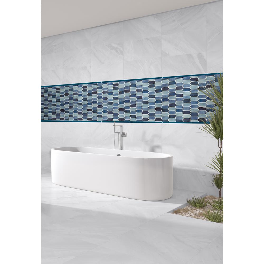 MSIs Boathouse Blue Picket Pattern Glass Mosaic Tiles feature warm tones of blue. The tiles blue color scheme complements a variety of design aesthetics and its modern picket pattern creates a distinct, one-of-a-kind look. These dazzling crystallized glass tiles can be run vertically or horizontally, depending on your desired look. Use them to create a glass backsplash, countertop or shower surround you will never tire of. Or, create an accent wall and give your room a punch of color. The tiles are mounted on 10 in. x 12 in. mesh-backed sheets for simplified installation.