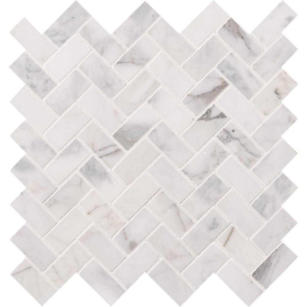 11.61 in. width x 11.61 in. length x 10mm thick mesh-mounted mosaic with herringbone patterned pieces