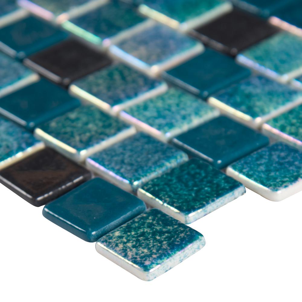 MSI’s Carribean Mermaid Glass Mosaic Tiles feature captivating deep green and teal tones that sparkle and shine for an inviting, tranquil ambiance reminiscent of the sea. Perfect for use as swimming pool tile and spa tile, this miniature glass mosaic also makes a signature statement on backsplashes and showers throughout homes and light use commercial properties. Highly-prized for durability and design versatility, Carribean Mermaid adds a dynamic visual element to any space, indoors or out. For a coordinated design scheme, this gorgeous pool tile works beautifully with a wide variety of pavers, pool copings, tiles and other materials in MSI’s inventory. This product features 1x1 glass tiles artful arranged on 12x12 mesh-mounted sheets for simplified installation that yields a professional look.