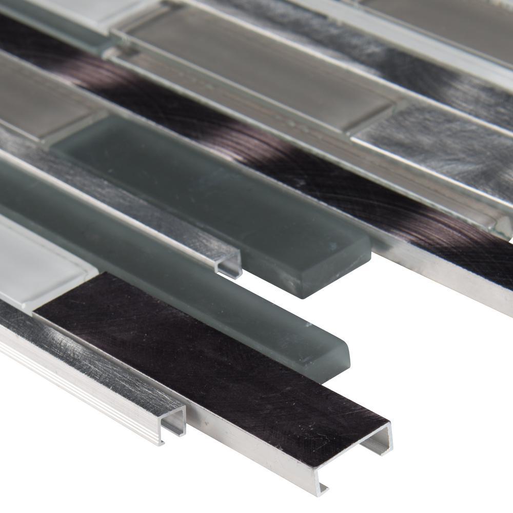 With the MSI 12 in. x 12 in. Cityscape Interlocking Mosaic Wall Tile, it's easy to add a splash of contemporary styling to your decor. This sleek tile features a seemingly random arrangement of glass and metal tile strips on a 12 in. x 12 in. mesh sheet that makes installation a much easier process. With elegant shades of white and grey frosted and glossy glass complemented by random silver brushed metal strips, this tile creates a distinct pattern and is suitable for kitchens, bathrooms and other residential or commercial spaces. Cityscape is perfect for a full statement wall or an accent strip to complete the tile install of your dreams.
