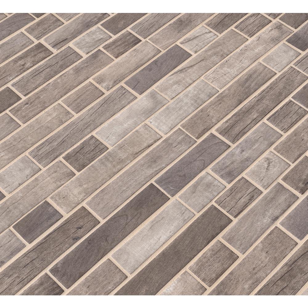 MSI's Driftwood Interlocking 6mm Glass Mosaic Tile features creams and taupe-grays accented by brown hues. Replicating the soft weathered look of driftwood, this lovely low sheen mosaic adds a warm, natural element to any space. Its neutral colors complement a variety of design aesthetics, making it an ideal backdrop for nearly any decor. Recommended for numerous residential applications, including feature walls, kitchen and bath backsplashes and shower surrounds, this glass wood-look tile is also suitable for light commercial environments, where it's a preferred wall and backsplash tile.