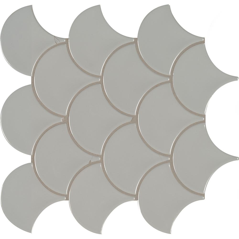 Mix and match Gray Glossy Fish Scale tiles with other tiles from MSI’s Domino Collection for easy to achieve designer looks. These tiles are mounted on mesh-backed sheets for simplified installation and a professional finish.