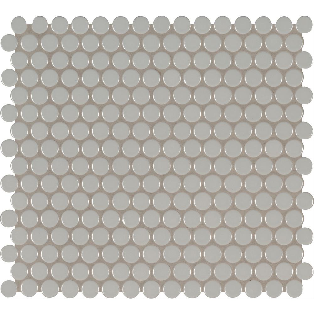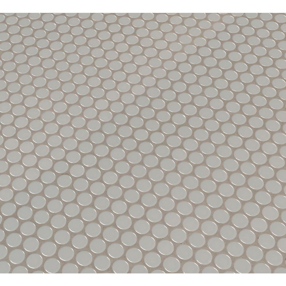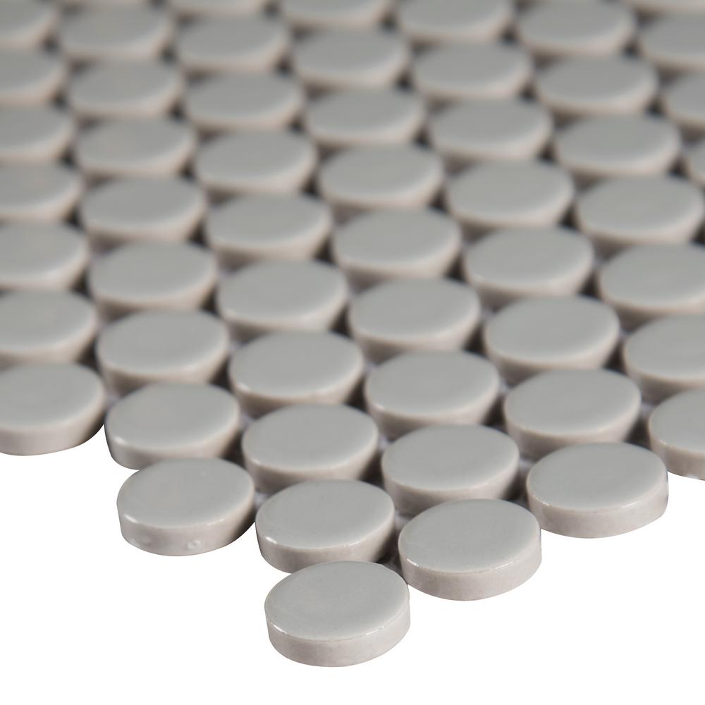 MSI’s Gray Glossy Penny Round porcelain tile is a nod to retro with a contemporary twist. This charming tile with a glossy finish creates visual interest without overpowering it’s perfect for updating kitchens and baths. A welcomed addition to both homes and light use commercial spaces, use it as wall tile, bathroom or kitchen backsplash tile, or on floors or countertops. When it comes to design versatility, this go-almost-anywhere mosaic is a top pick. Mix and match Gray Glossy Penny Round tile with other tiles from MSI’s Domino Collection for easy to achieve designer looks. These tiles are mounted on mesh-backed sheets for simplified installation and a professional finish.