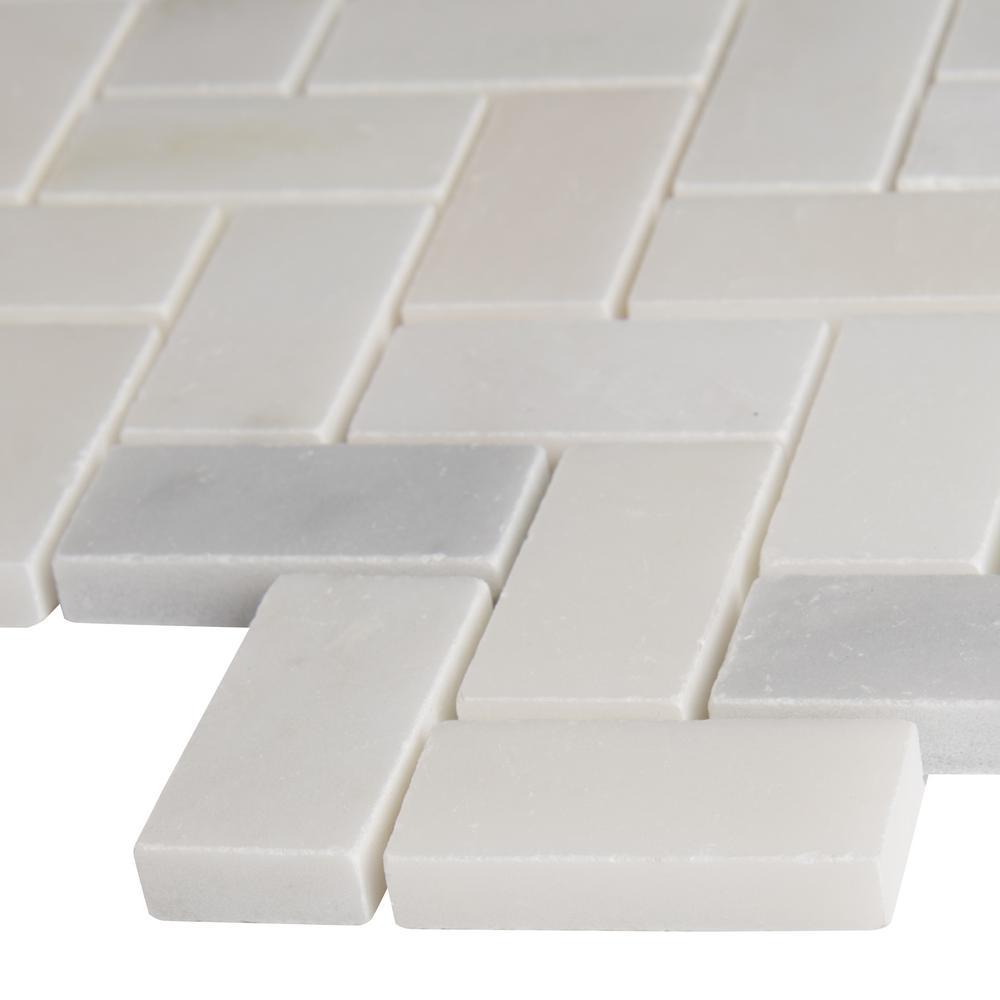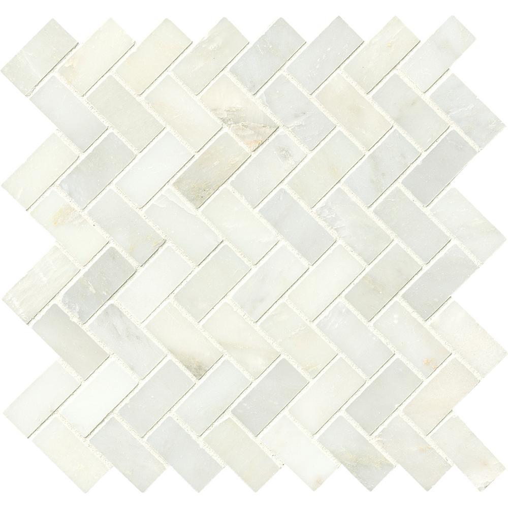 With the MSI Greecian White Herringbone Mosaic Floor and Wall Tile, it's easy to add a splash of contemporary styling to your decor. This attractive tile features chips of natural marble tile in a herringbone pattern on a 12 in. x 12 in. mesh sheet that makes installation a much easier process. With elegant white shades of natural marble in a polished finish, this tile creates a distinct pattern for install in kitchens, bathrooms and other residential or commercial spaces. Note: Inspect all tiles before installation. Natural stone products inherently lack uniformity and are subject to variation in color, shade, finish, etc. It is recommended to blend tiles from different boxes when installing. Natural stones may be characterized by dry seams and pit’s that are often filled. The filling can work it’s way out and it may be necessary to refill these voids as part of a normal maintenance procedure. All natural stone products should be sealed with a penetrating sealer.