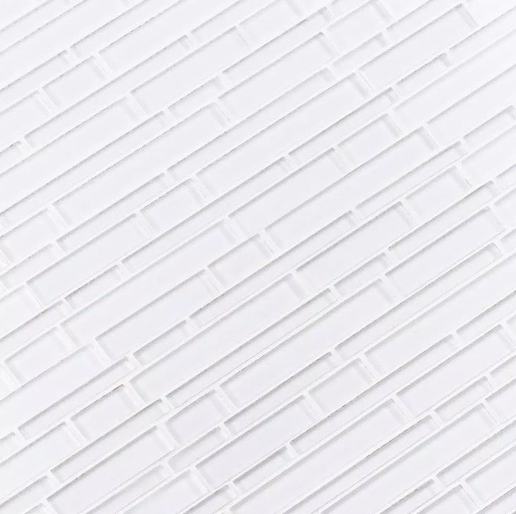 With the Ice Interlocking Glass Wall Tile, it's easy to add a splash of contemporary styling to your decor. This attractive tile features a seemingly random arrangement of tile strips on a 12 in. x 12 in. mesh sheet that makes installation a much easier process. Constructed from durable, frost-resistant glass material, this tile is suitable for installation on walls and countertops. The attractive combination of elegant white tones, an unglazed, smooth finish, a high sheen and subtle variations in tone makes a perfect complement for a wide variety of design schemes.