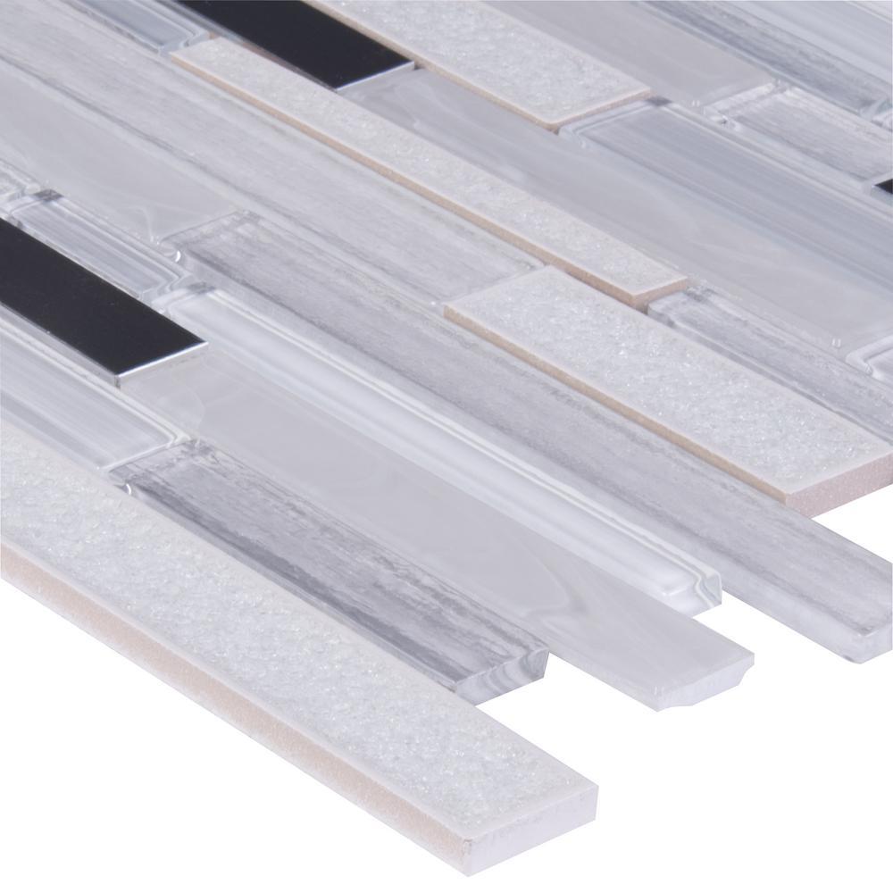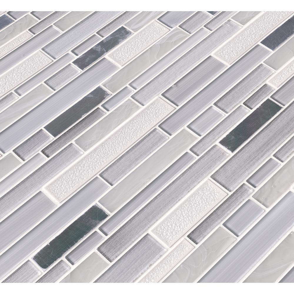 Add a splash of chic styling to your decor with Krystal Interlocking Mosaic Wall Tile. A seemingly random blend of elegant white glossy glass and metallic brick pieces forms this 12 in. x 12 in. mesh-mounted tile, infusing your space with a swank look and a contemporary ambiance. The low-sheen, smooth-finished tiles will invigorate any residential or commercial setting and are versatile enough to be used outside or on a fireplace surround. They look particularly ravishing as kitchen backsplash or bath wall, and also work stunningly as a countertop surface or feature wall.