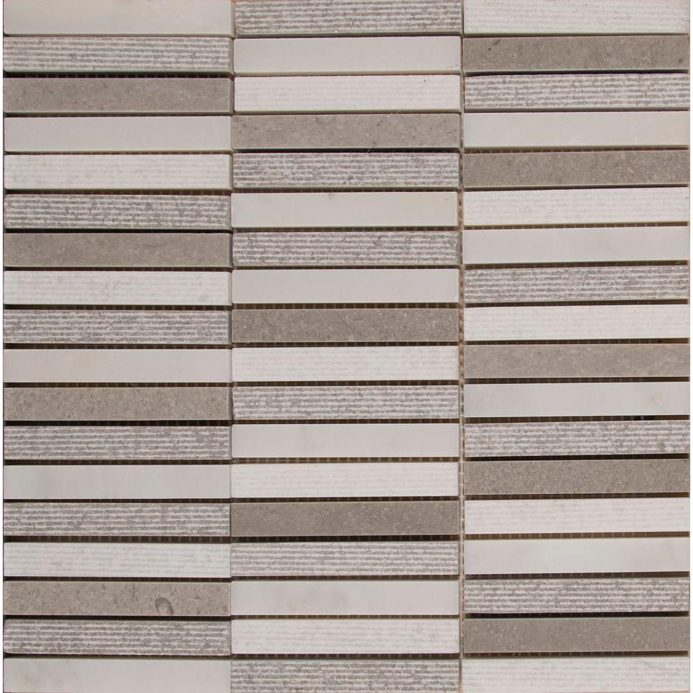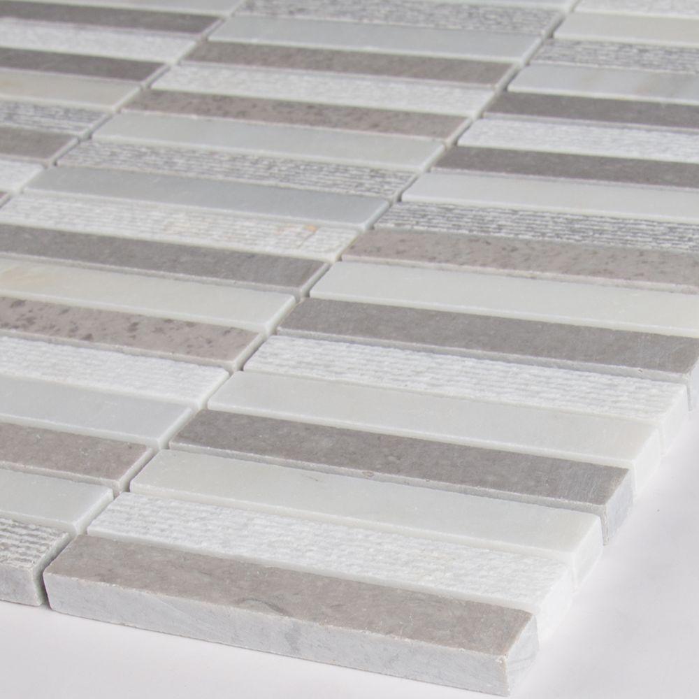 With the MSI Linea 12 in. x 12 in. Stone Blend Mosaic Wall Tile, it's easy to add a splash of contemporary styling to your decor. This attractive tile features a stacked arrangement of 5/8 in. x 4 in. strips of limestone and marble on a 12 in. x 12 in. mesh sheet that makes installation a much easier process. With trendy gray and white tones, this tile creates a distinct pattern. Ideal for use on interior and exterior walls and floors, the mosaic has infinite applications to complement a variety of installs.