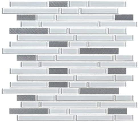 Add a stunning backsplash to your kitchen or a feature wall with these Lucid Sky Interlocking Mosaic Wall Tiles. They measure 12 in. x 12 in. and are mesh-mounted for easy installation. These tiles are a blend of elegant white glossy glass and metallic brick pieces with low-sheen and a smooth finish. Whether you use them in a residential or commercial setting, they will add a splash of chic styling to your decor. They are even durable enough to be used as a fireplace surround.
