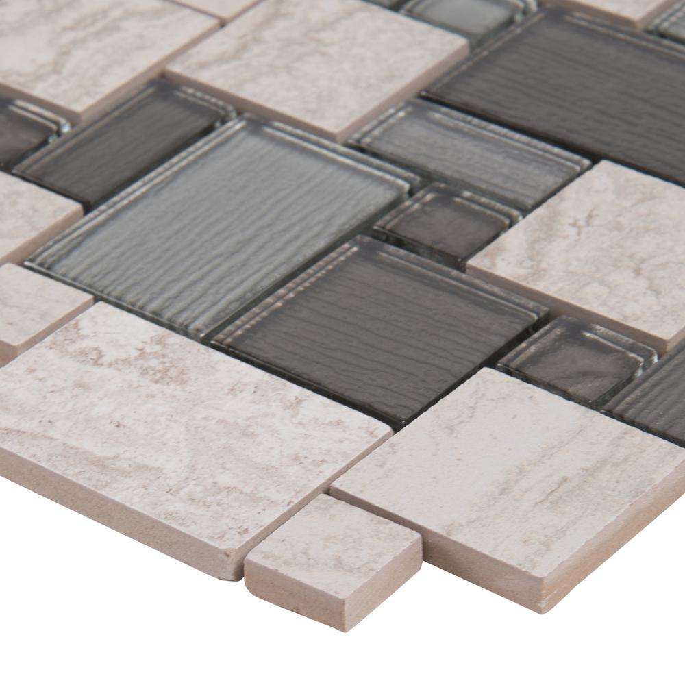 Lynx Pattern Glass Mosaic Tiles feature a handsome gray background with tonal inflections from the crystallized glass. Homeowners choose this tile for its pretty pattern and cool color, which make it an ideal backdrop for any design. Use this versatile product as glass mosaic backsplash tile or to create a stunning accent wall or countertop. Its also suitable for light commercial settings, where it is often used as glass backsplash tile. Wherever its used, this modern white tile makes a style statement that turns heads.