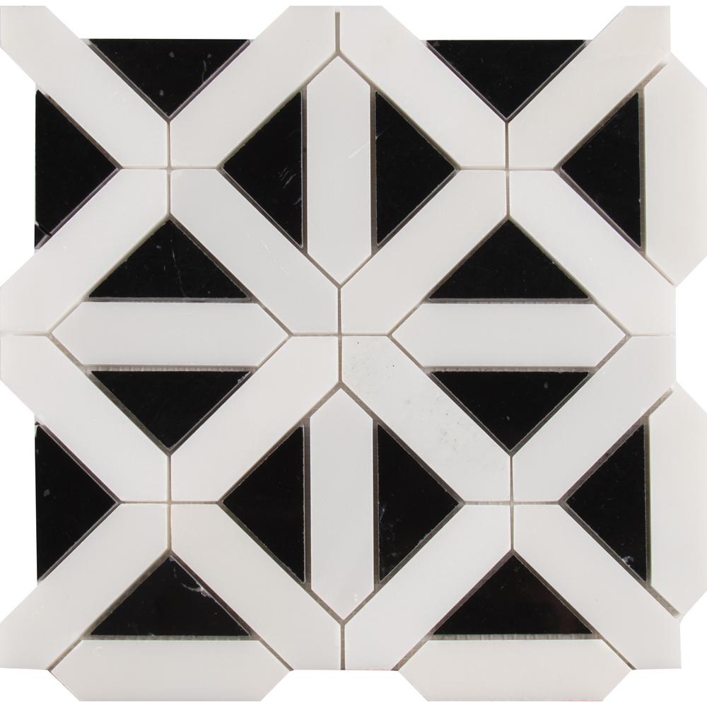 MSIs Retro Fretwork Polished Marble Wall Tile features a striking and distinctive design crafted out of fine black and white marble. Use these exquisite tiles to create one-of-a-kind kitchen backsplashes, inviting entryway floors, and gorgeous tiled bathrooms, or anywhere a signature look is desired. Once you invite Retro Fretwork Polished Wall Tile into your home, you can expect the compliments to follow. These tiles are mounted on mesh-backed sheets for simplified installation and a professional finish. Note: Inspect all tiles before installation. Natural stone products inherently lack uniformity and are subject to variation in color, shade, finish, etc. It is recommended to blend tiles from different boxes when installing. Natural stones may be characterized by dry seams and pit’s that are often filled. The filling can work it’s way out and it may be necessary to refill these voids as part of a normal maintenance procedure. All natural stone products should be sealed with a penetrating sealer. After installation, vendor disclaims any liabilities.