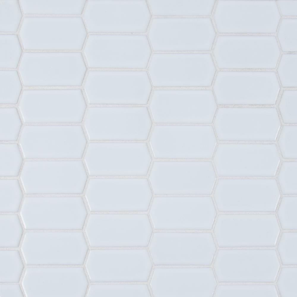 Retro Picket Bianco Pattern Porcelain Mosaic Tiles feature a soft white background with tonal inflections from the porcelain. Homeowners choose this tile for its pretty pattern and cool color, which make it an ideal backdrop for any design. Use this versatile product as porcelain mosaic backsplash tile or to create a stunning accent wall or countertop. It’s also suitable for light commercial settings, where it is often used as porcelain backsplash tile. Wherever its used, this modern white tile makes a style statement that turns heads.
