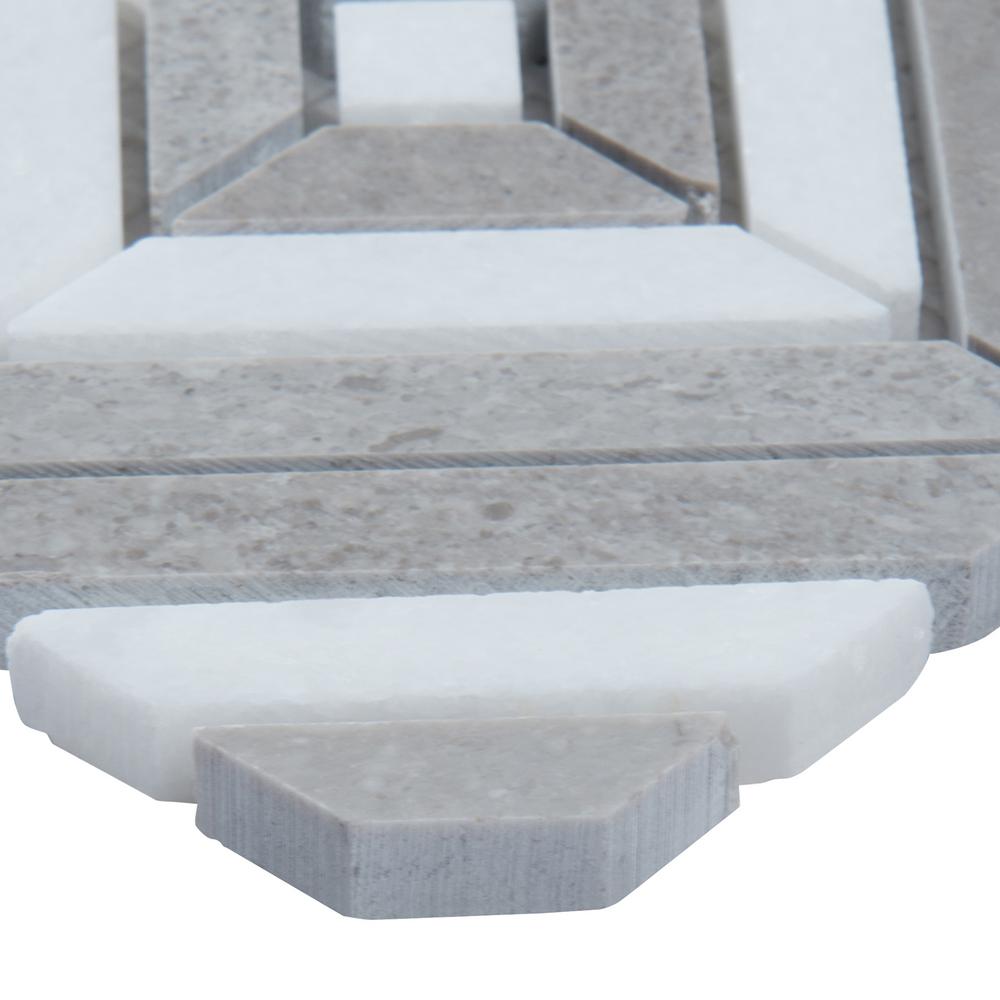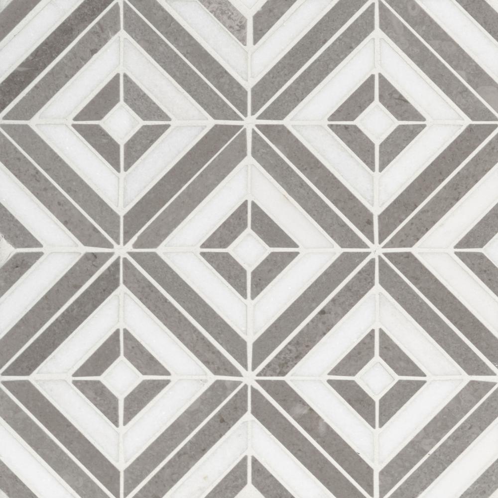MSls Rhombix Dove Mosaic Tile is crafted from fine natural stone. Featuring an intriguing diamond pattern created from alternating gray and white marble, this tile evokes a sense of sophistication and dimension. Versatile and beautiful, its polished finish and neutral color make it suitable for a wide range of design styles and color schemes. Use Rhombix Dove Mosaic on residential, light commercial, or commercial floors, walls, backsplash, shower surround, or almost anywhere a distinctive pattern is desired. These tiles are GREENGUARD Indoor Air Quality Certified and come mounted on mesh-backed sheets for a simplified installation and professional finish.