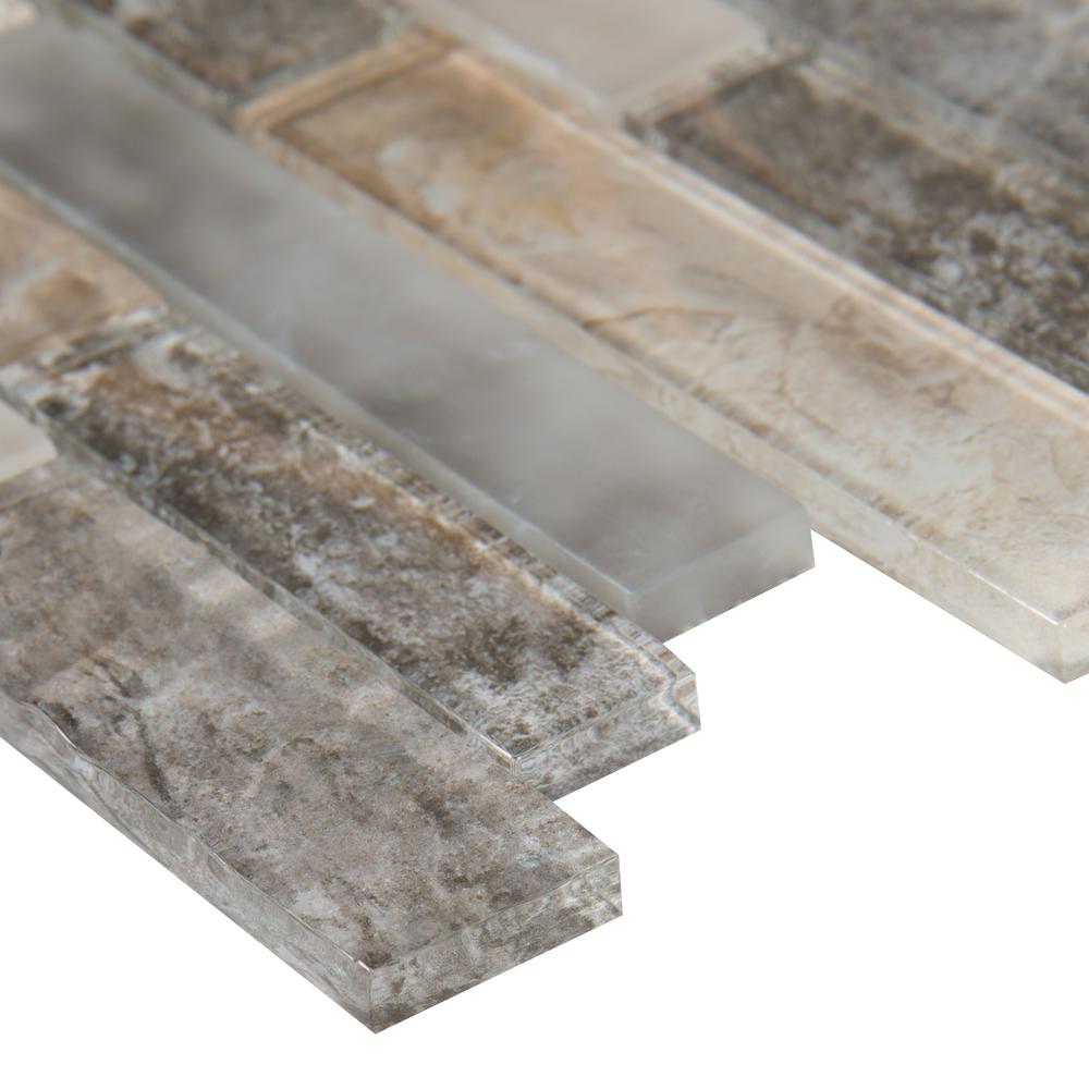 With Savoy Interlocking Glass Wall Tile, it's easy to add a splash of contemporary styling to your decor. This attractive tile features a crystallized glass with seemingly random arrangement of tile strips on a 12 in. x 12 in. mesh sheet that makes installation a much easier process. Constructed from durable, frost-resistant glass material, this tile is suitable for installation on walls and countertops. The attractive combination of handsome brown tones, an unglazed, smooth finish, a high sheen and subtle variations in tone makes a perfect complement for a wide variety of design schemes.
