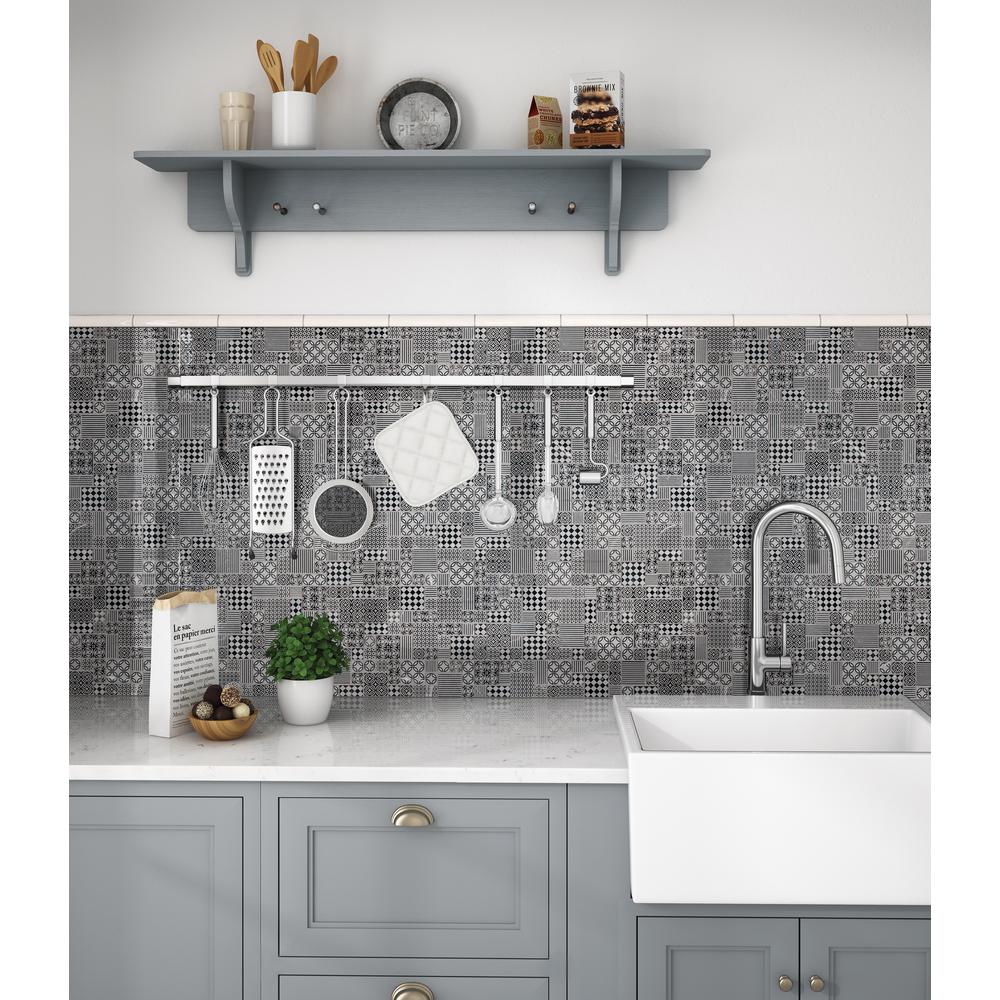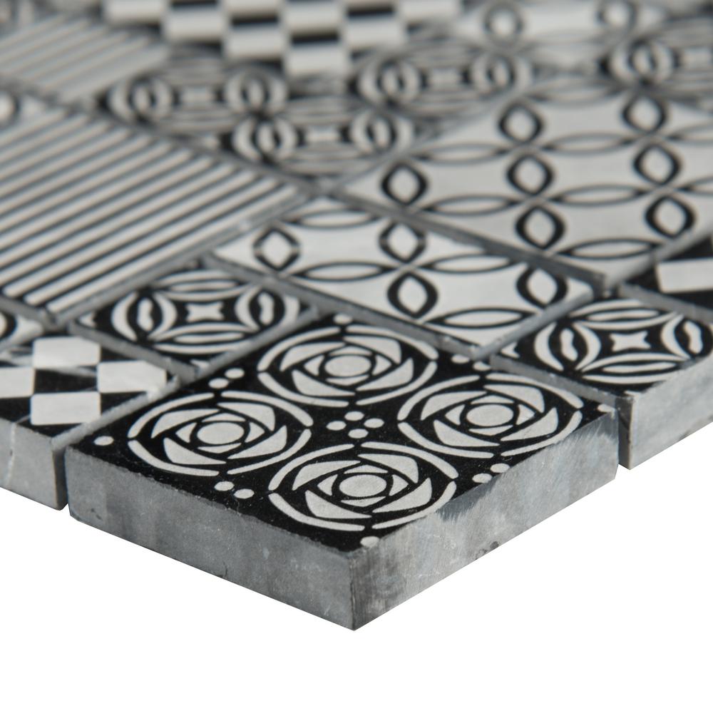 MSI's Tetris Nero 10 mm Marble Mosaic Backsplash and Wall Tile features a stunning combination of dramatic black and sophisticated gray tones in various geometric patterns. The perfect choice for creating visual interest, these Encaustic-look tiles feature a laser etched design resulting in an engraved surface adding a touch of detail to any space. Use them to create a signature backsplash, accent wall, countertop or to fashion a magazine-worthy shower surround. New installation or renovation, achieving a distinguished of-the-moment look has never been easier. These tiles are mounted on mesh-backed sheets for simplified installation and a professional finish.