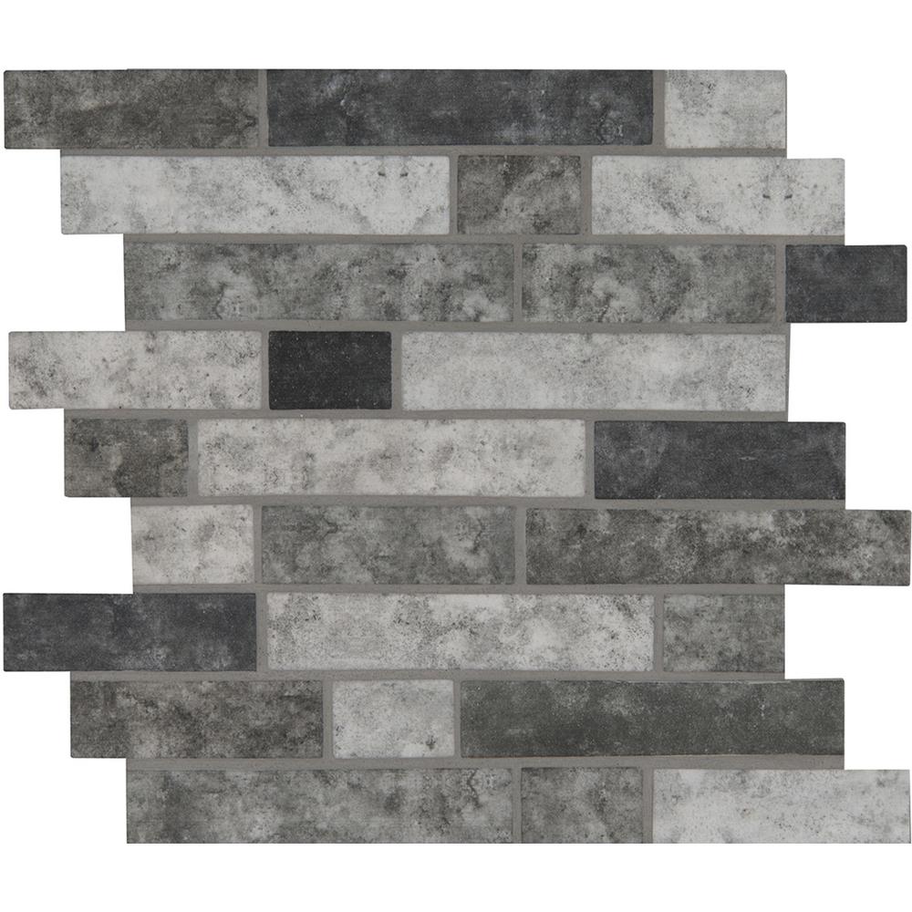 With the Urban Tapestry Interlocking Glass Wall Tile, it's easy to add a splash of contemporary styling to your decor. This attractive tile features seemingly random arrangement of brick pieces on 11.61 in. x 11.73 in. mesh sheet that makes installation a much easier process. Constructed from durable, frost-resistant glass material, this tile is suitable for installation on walls and countertops. The attractive combination of handsome gray tones, an unglazed, smooth finish, a high sheen and subtle variations in tone makes a perfect complement for a wide variety of design schemes.