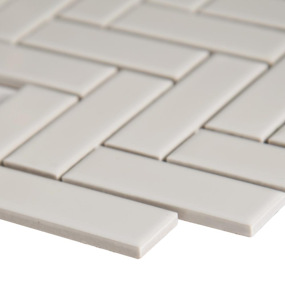 MSIs White Glossy Herringbone porcelain tile offers a soft, neutral look that complements nearly any design scheme. Its classic yet on-trend pattern and glossy finish create visual interest without overpowering its a perfect choice for updating kitchens and baths. A welcomed addition to both homes and light use commercial spaces, use it as wall tile, bathroom or kitchen backsplash tile, or on floors or countertops. Mix and match White Glossy Herringbone tile with other tiles from MSIs Domino Collection for easy to achieve designer looks. These tiles are mounted on mesh-backed sheets for simplified installation and a professional finish.