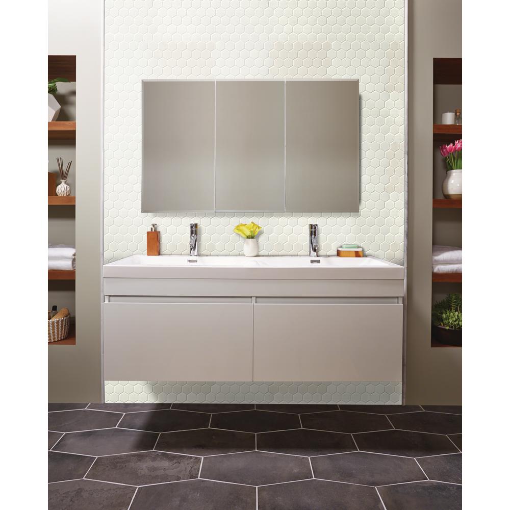 With the White Hexagon Porcelain Mosaic Wall Tile, it's easy to add a splash of contemporary styling to your decor. This attractive tile features a smooth, low sheen finish with 2 in. hexagon arrangement of tile pieces on 10.875 in. x 12.625 in. mesh sheet that makes installation a much easier process. Elegant white shades of this porcelain create a distinct pattern for various install projects in bathrooms, kitchens and other residential or commercial spaces.