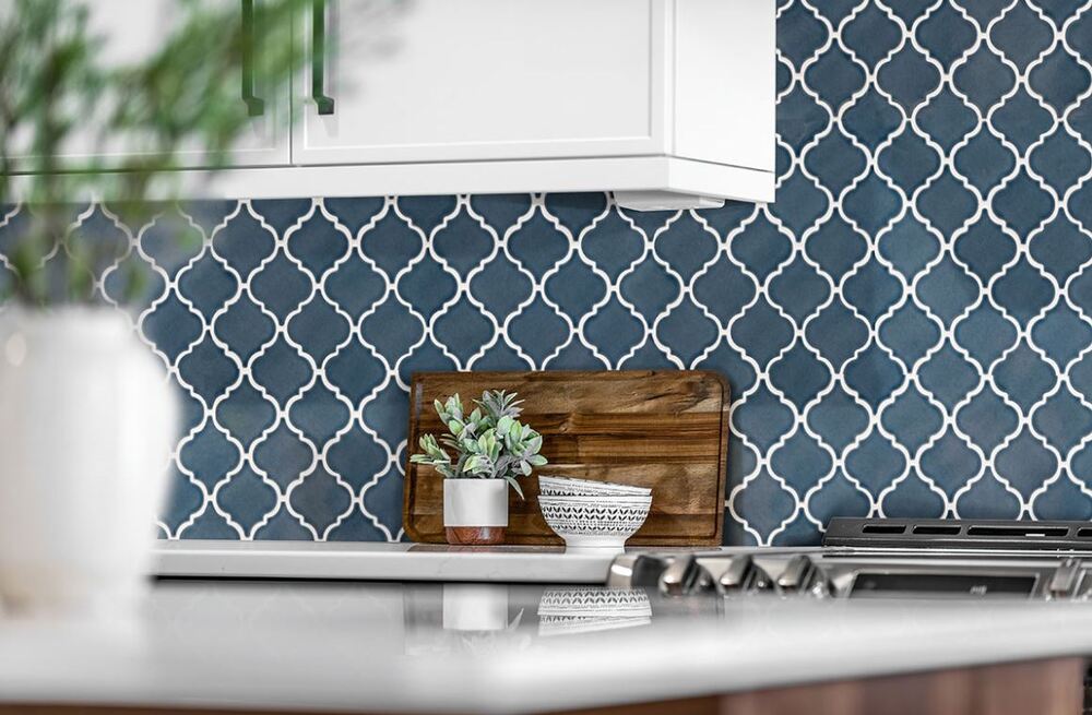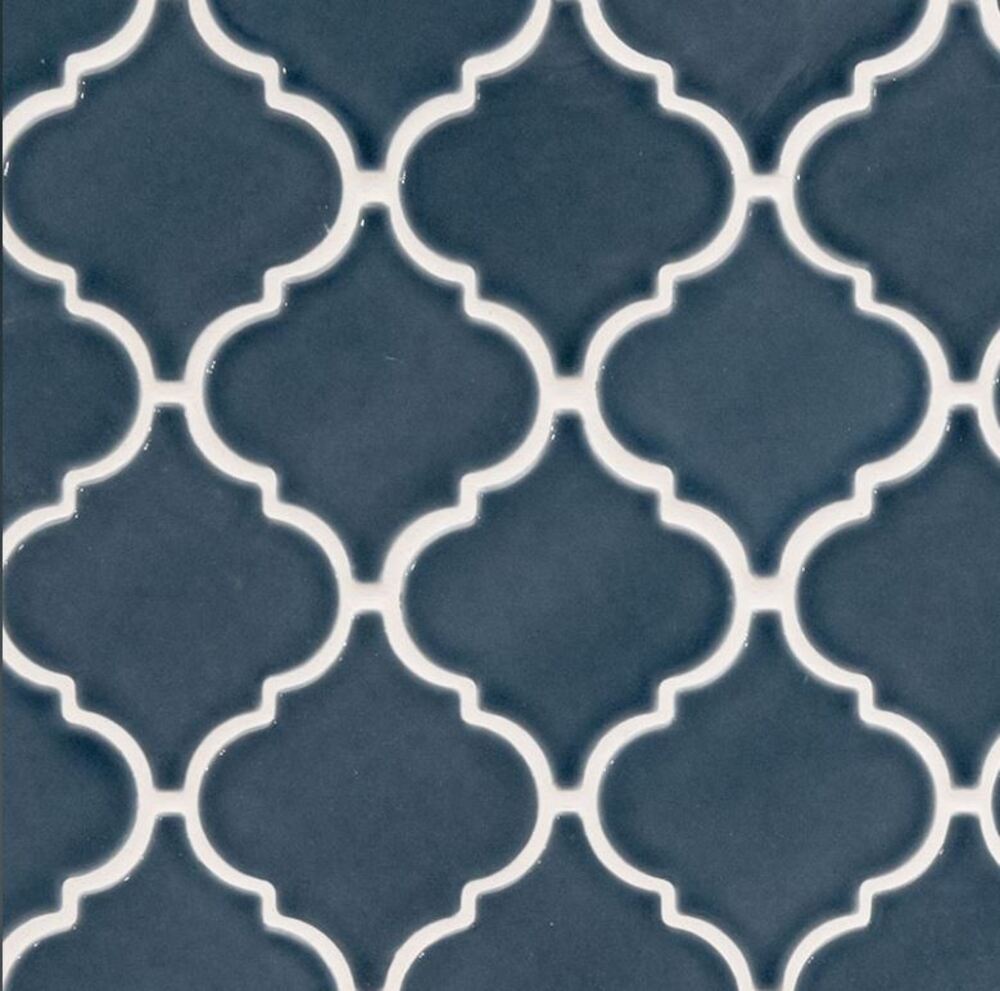 Navy Blue Lantern Arabesque Handcrafted Ceramic Mosaic Wall Tile for Kitchen Backsplash, Bathroom, Accent Wall