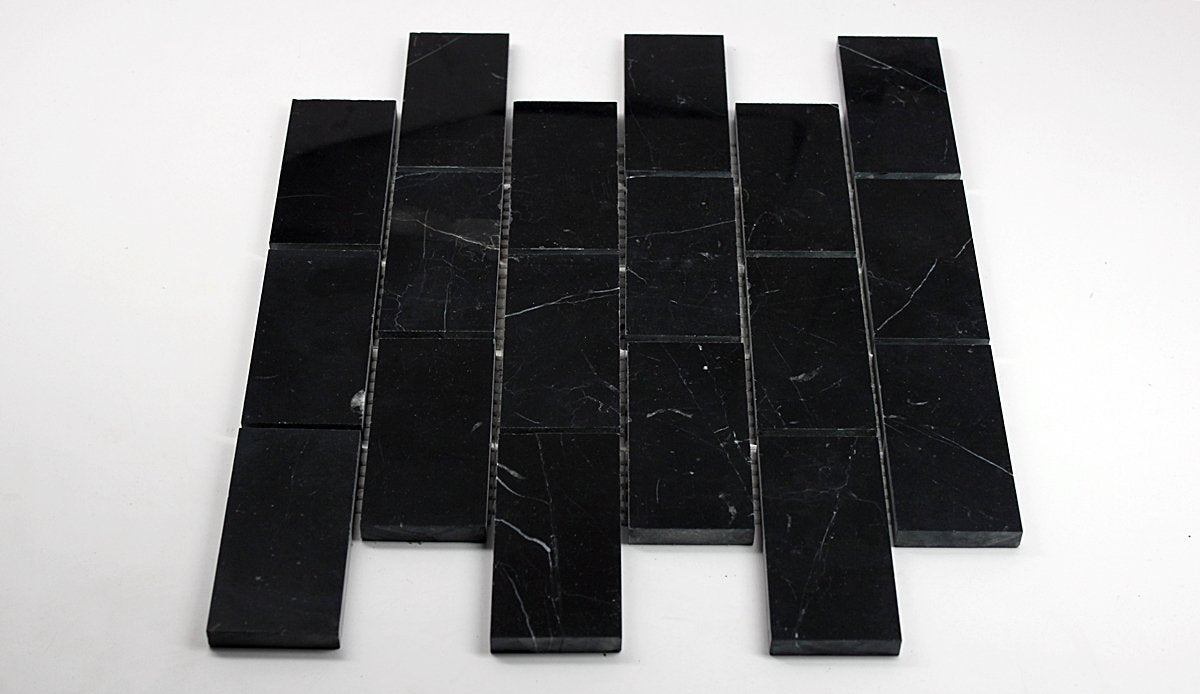 Nero Marquina Black Marble Subway 2x4 Brick Wall Floor Mosaic Tile Polished adds sophistication to any room. Its classic marble look features deep blacks and warm grays in a timeless design. Made of high-quality polished marble, the tile is easy to clean and maintain. Create stunning designs with an elegant, natural feel.