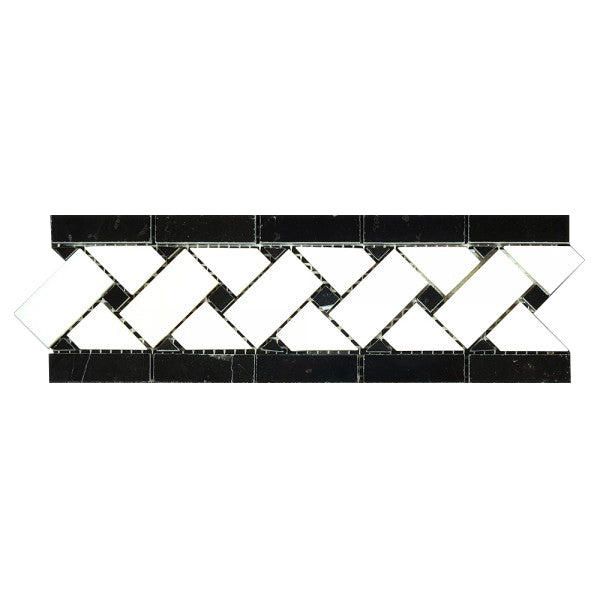 Nero Marquina - Thassos White Basketweave Border 3 1/4x11 Wall Tile
