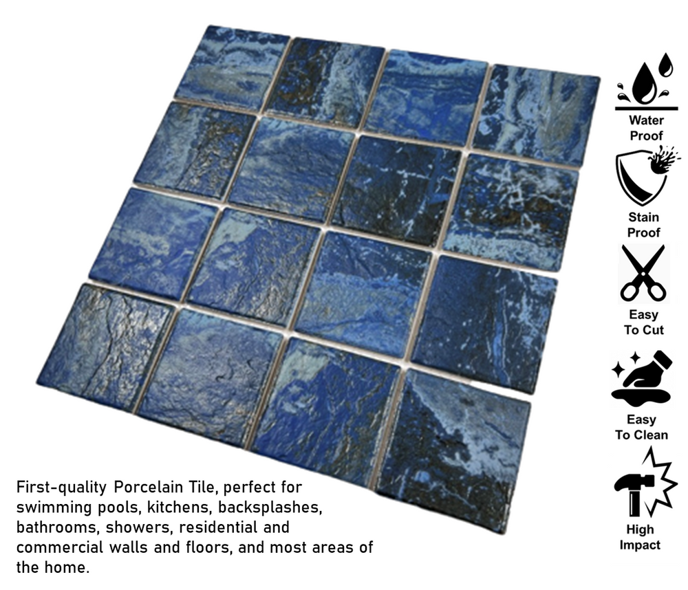 Material: Porcelain - Color: blues and Brownish - Finish Textured