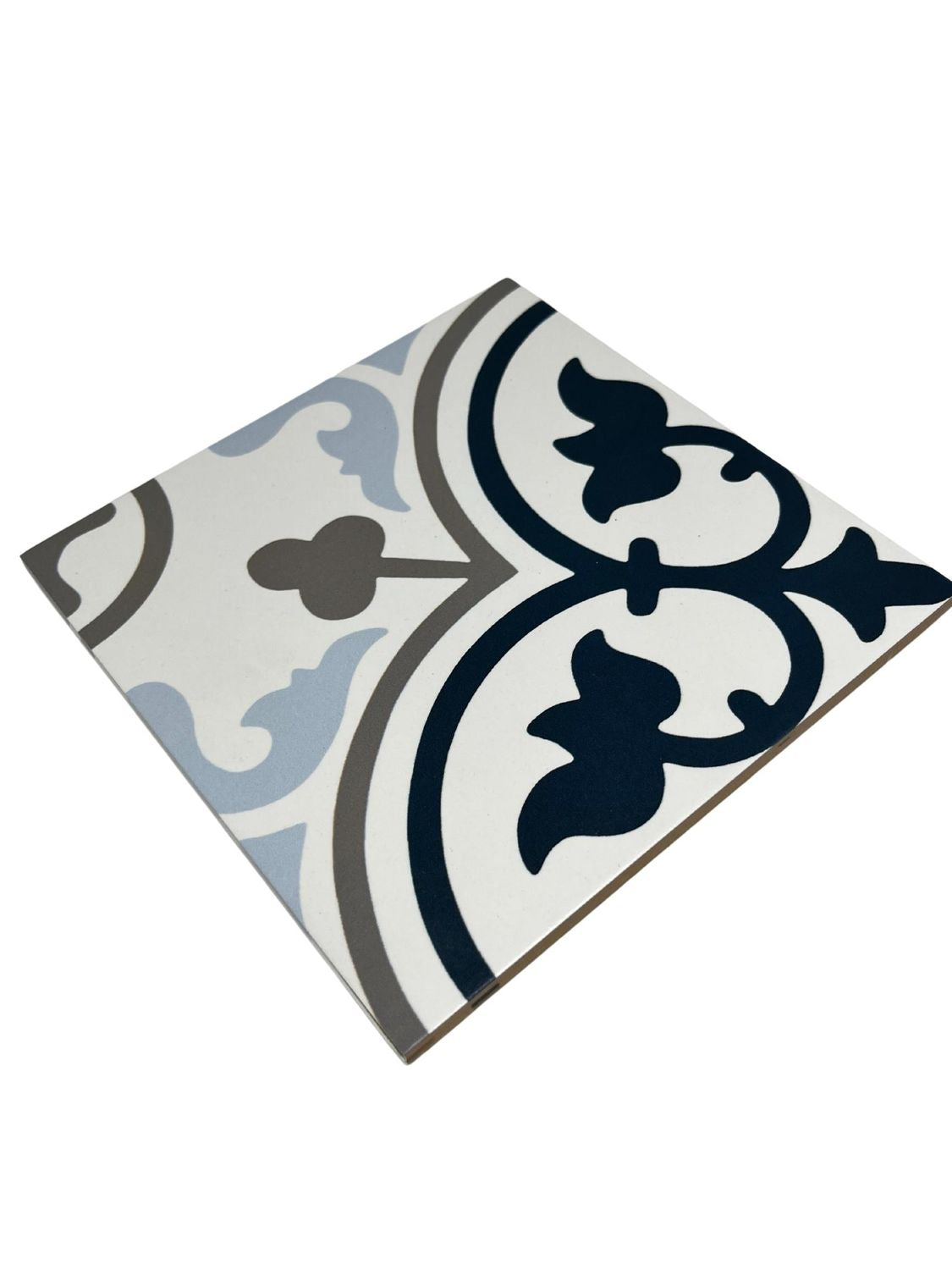 Provenza Square 8x8 Gray White Blue Compact Porcelain Floor Tile Matte for Kitchen Wall, Bathroom Shower, Laundry Room, Accent Wall