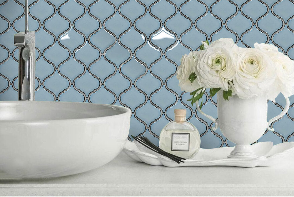 Santorini Sky Blue Lantern Porcelain Glossy Mosaic Wall Tile for Kitchen Backsplash Bathroom Wall Pool Tiles by Tenedos (Box of 10 Sheets)