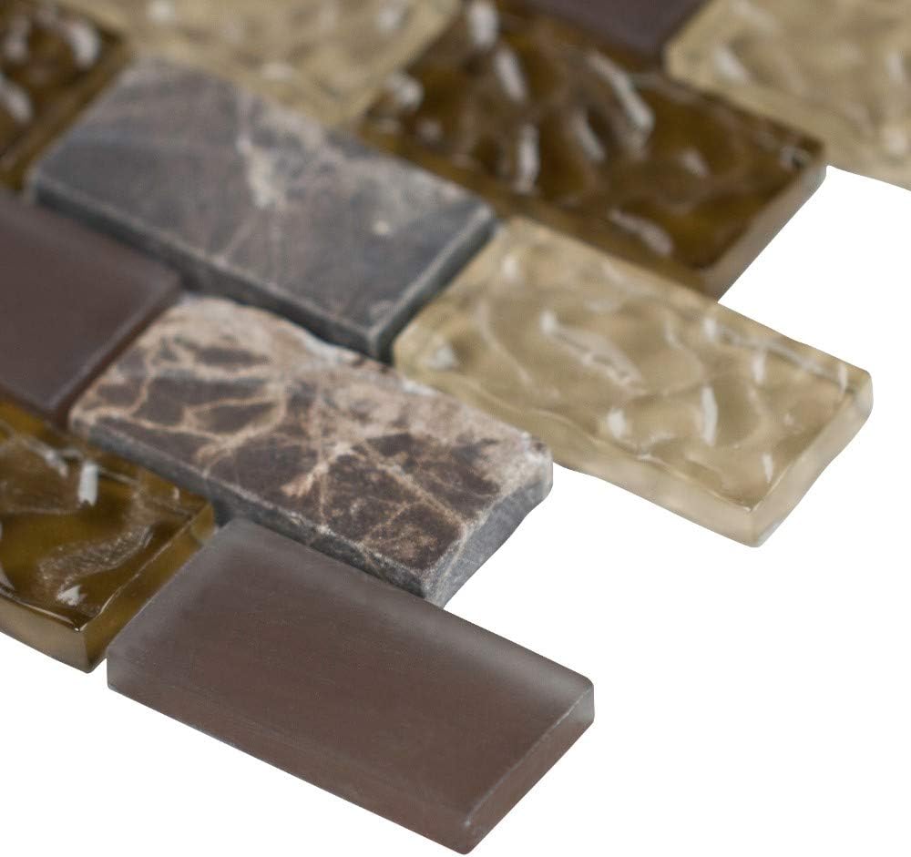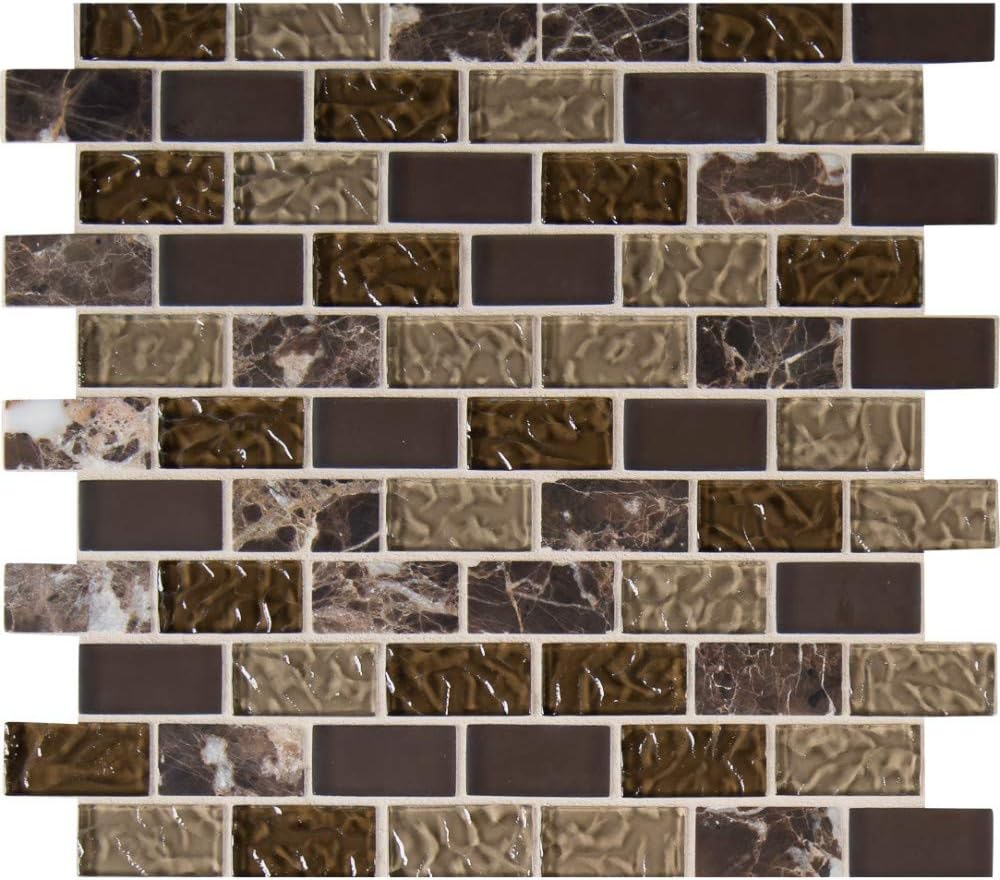 Bring natural beauty and refined elegance into your space with this Glass and Stone Blend Mosaic Tile in Brown, Cream, and Beige Tones. Featuring a harmonious combination of crackled glass pieces and rich Emperador Dark marble, this mosaic tile delivers a warm and inviting feel perfect for both classic and contemporary designs. The natural stone’s veining combined with the textured crackled glass adds depth, character, and a touch of luxury to any installation.