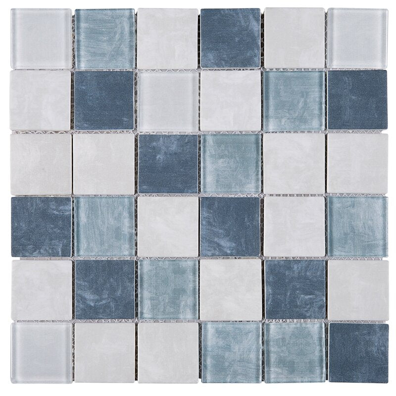 Blue with Gray and White Glass 2" Square Mosaic Tile for Walls, Bathroom and Kitchen Walls Kitchen Backsplashes - Tenedos