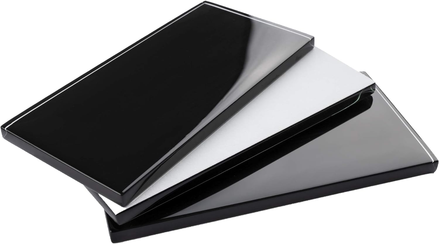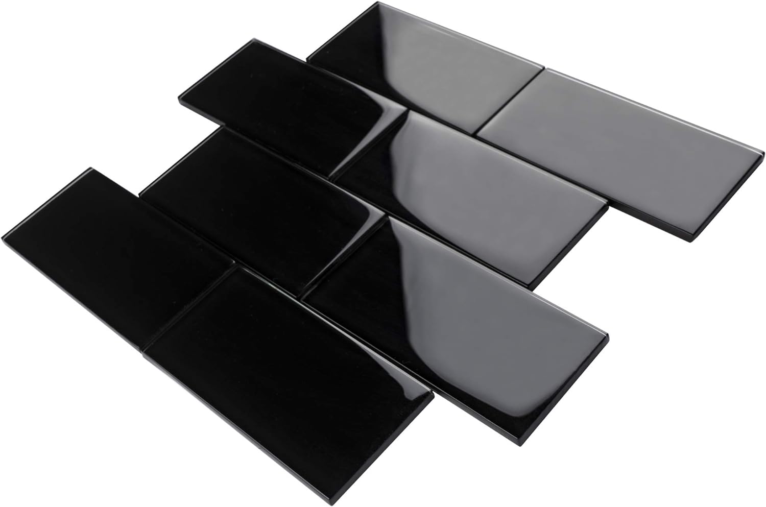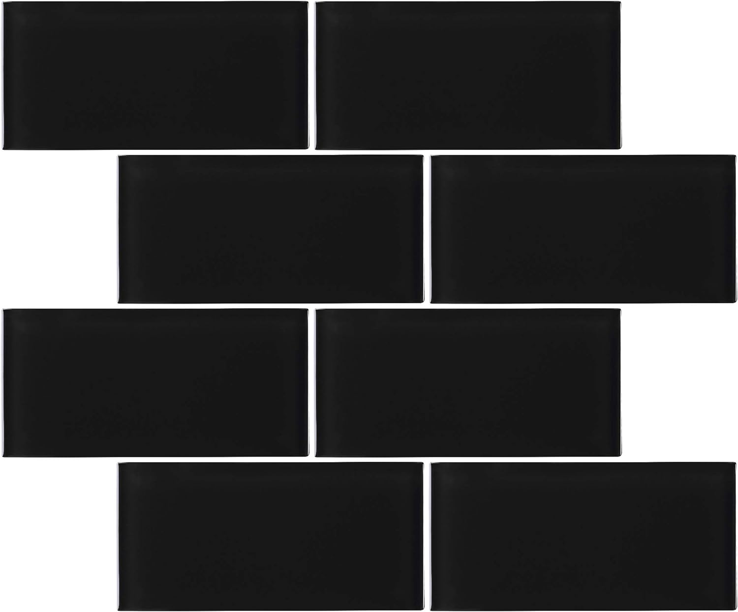 Color: Black Tile Size: 3"x6" Sheet Size: 1 sqt (8 pcs) Material: Glass Usage: Kitchen and Bath...