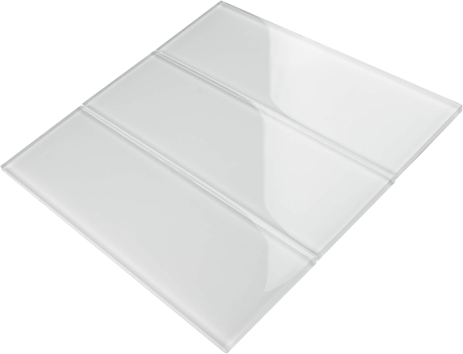 Color: White Size: 4"x12 (3pcs tiles=1 sqt) Material: Glass Finish: Glossy Usage: Kitchen and Bath Backsplash Wall...