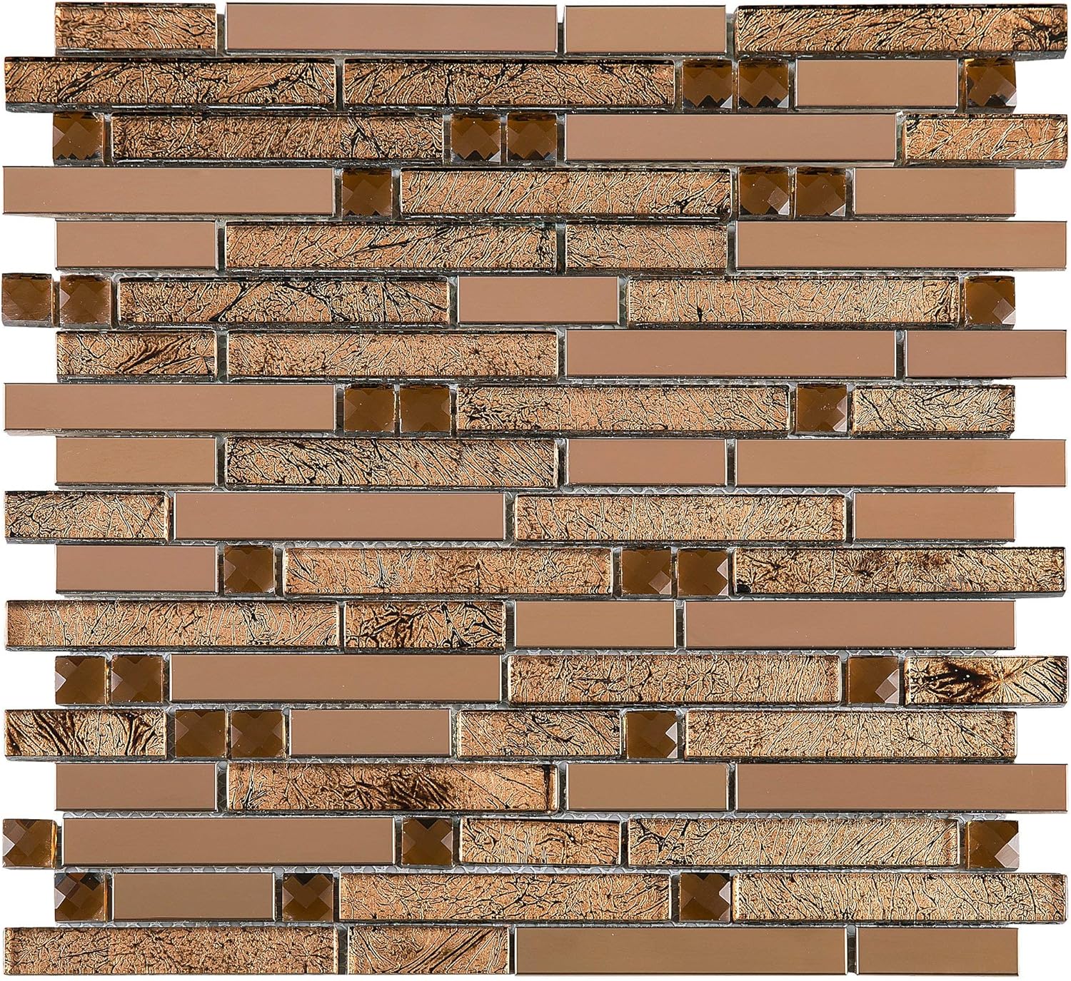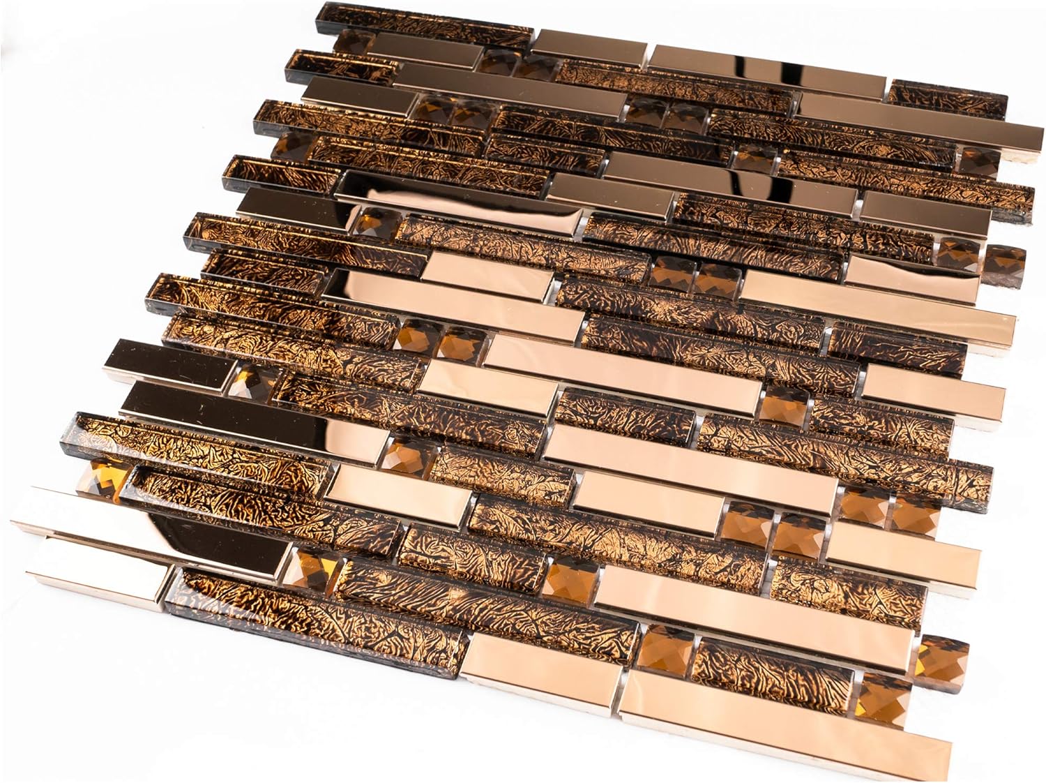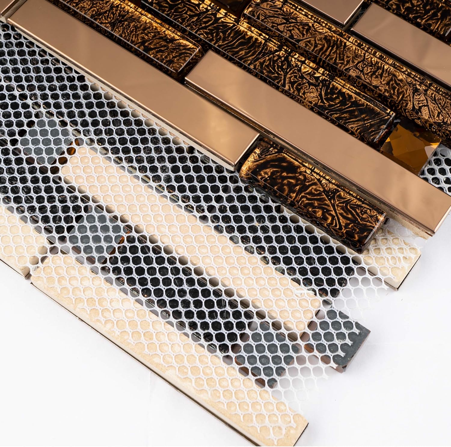 This premium mosaic combines warm brown hues with sleek metallic elements, creating a contemporary design that complements both residential and commercial spaces. Its durable glass and stainless-steel construction ensures long-lasting beauty with minimal maintenance. Whether you're updating your kitchen backsplash or adding a decorative touch to your bathroom, this versatile tile sheet brings sophisticated charm to any project.