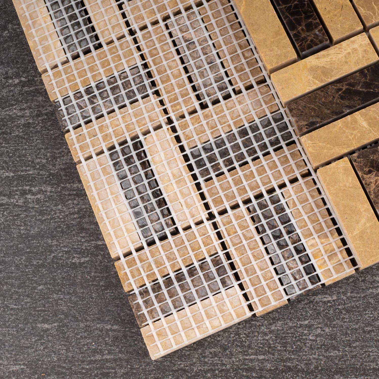 Elevate your space with the natural elegance of our Brown & Beige Woven Marble Mosaic Tile, crafted from luxurious Crema Marfil and Emperador marble. Each sheet features a beautifully interlaced design that blends warm beige and rich brown tones, creating a timeless look suitable for a variety of interiors.