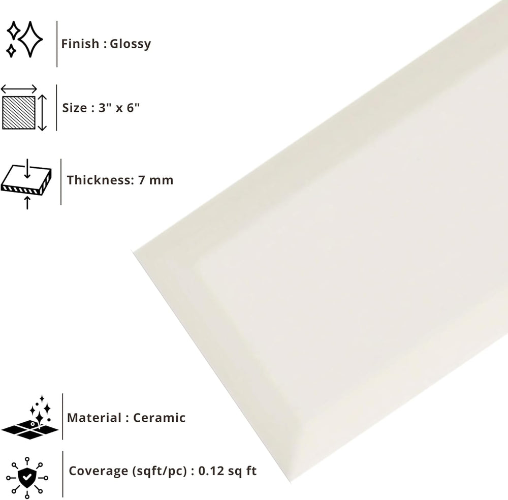 Enhance your space with the timeless look of the Tenedos 3x6 Beveled Glossy Ceramic Subway Tile. Available in Bright White, Black, and Almond, this premium wall tile brings classic elegance and modern durability to any residential or commercial project. Each box includes 10 pieces, offering the perfect amount for backsplashes, accent sections, sample areas, or small upgrades. Crafted from high-quality ceramic, the surface features a smooth glossy finish that reflects light beautifully while the beveled edges add depth and dimension to your walls. Ideal for kitchen backsplashes, bathroom showers, laundry rooms, accent walls, fireplace surrounds, cafés, and boutique interiors, this tile delivers a clean, polished look that never goes out of style. Designed for easy installation using standard thinset and grout, these tiles are water-resistant, easy to clean, and built to maintain their color and shine over time. Whether you prefer a bright and crisp atmosphere, a bold dark contrast, or a warm neutral tone, the Tenedos Subway Tile series offers versatile options to complement any design.