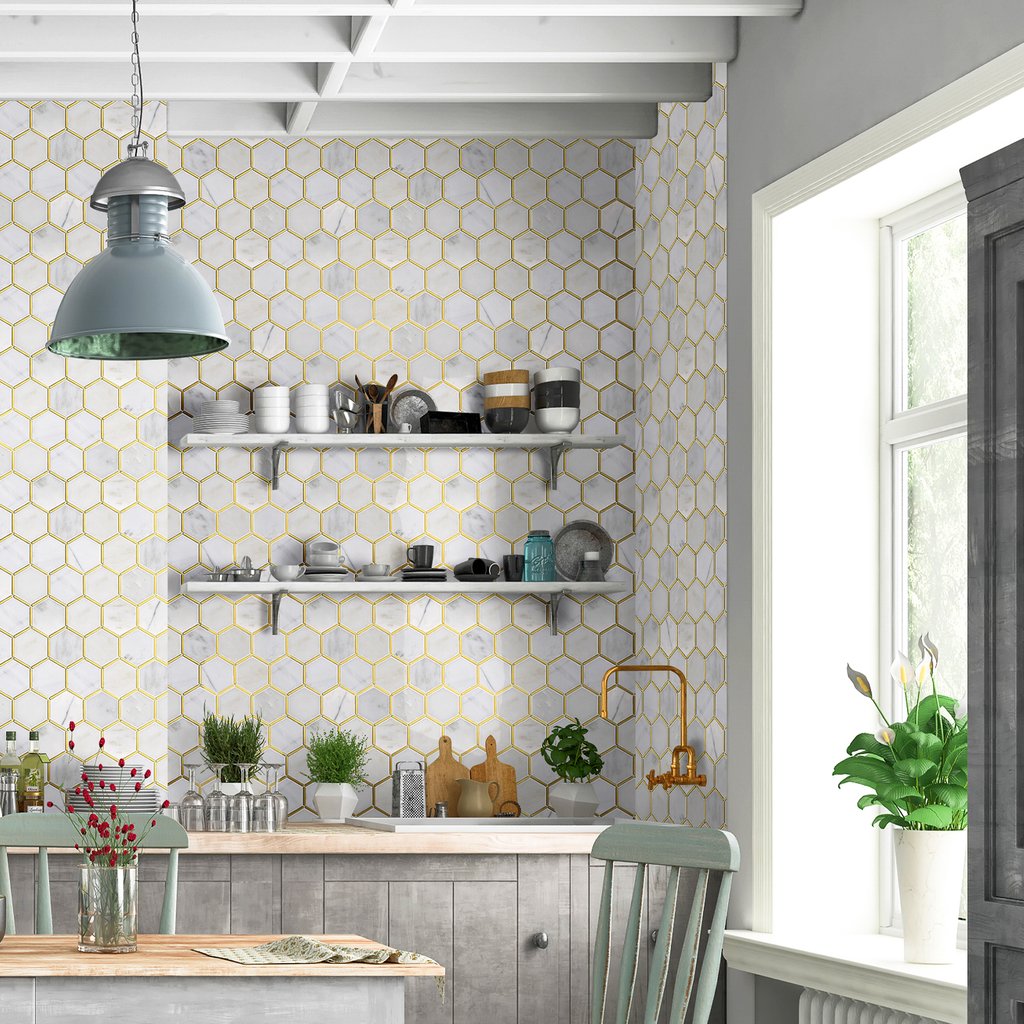 | Color | White with Grey Veins and Yellow Gold Metal |