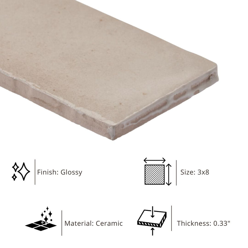 Tenedos HTC184 Ceramic Subway Wall Tile Handmade Look Glossy Glaze for Backsplash Kitchen, Bathroom Shower, Accent Wall (1, Ivory Mist)