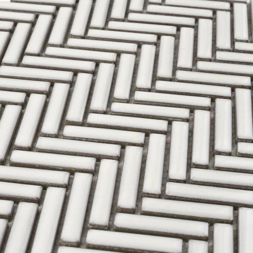 Tenedos White Porcelain Herringbone Mosaic Tile brings a clean, modern aesthetic to any interior space. Each 11x12-inch sheet is crafted with elegant 1/2 x 2-inch porcelain brick pieces arranged in a precise herringbone pattern, creating a dynamic visual flow that enhances both small and large areas. The refined, narrow brick layout adds texture and architectural movement, making it suitable for contemporary and classic designs alike. Made from premium porcelain, this mosaic provides excellent resistance to moisture, stains, and heat, ensuring long-lasting performance in bathrooms, showers, kitchen backsplashes, laundry rooms, accent walls, and other indoor applications. The glossy finish reflects light beautifully, brightening any space while offering an easy-to-clean, hygienic surface. Mesh-backed sheets allow quick and accurate installation for both DIY enthusiasts and professionals. Available in 1 sheet for samples or 10-sheet value packs for full installations, this mosaic tile is ideal for remodeling or new projects. Whether you're upgrading a small feature area or covering a larger wall surface, the Tenedos White Porcelain Herringbone Mosaic Tile delivers timeless elegance, durability, and high-end visual appeal.