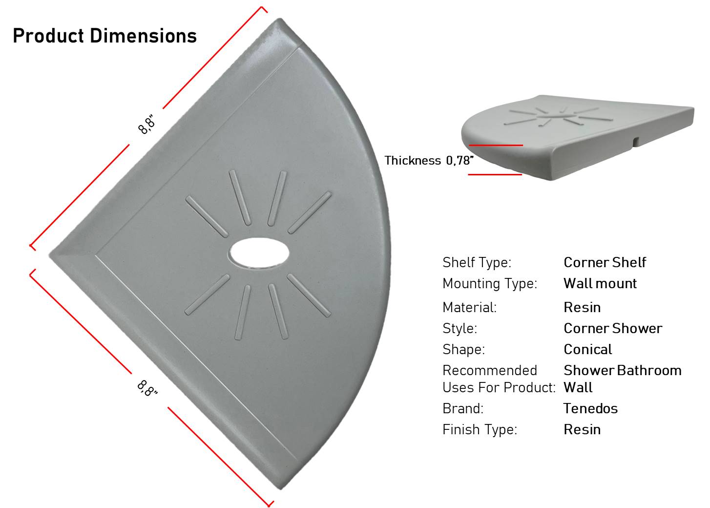 Tenedos Light Grey Resin Corner Bathroom Shower Shelf Flatback Wall Mounted