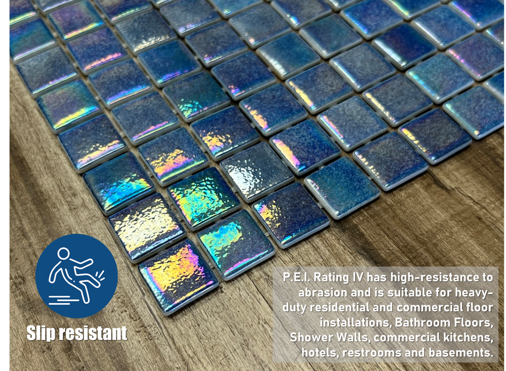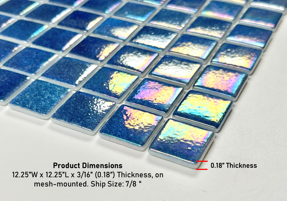 Tenedos Ocean Blue 1x1 Square Iridescent Recycled Glass Mosaic Floor and Wall Tile for Kitchen Backsplash, Swimming Pool Tile, Bathroom Wall, Accent Wall
