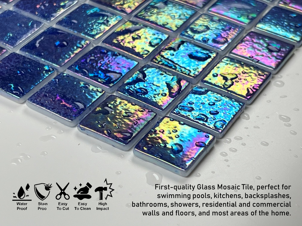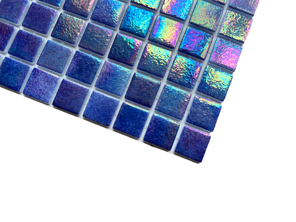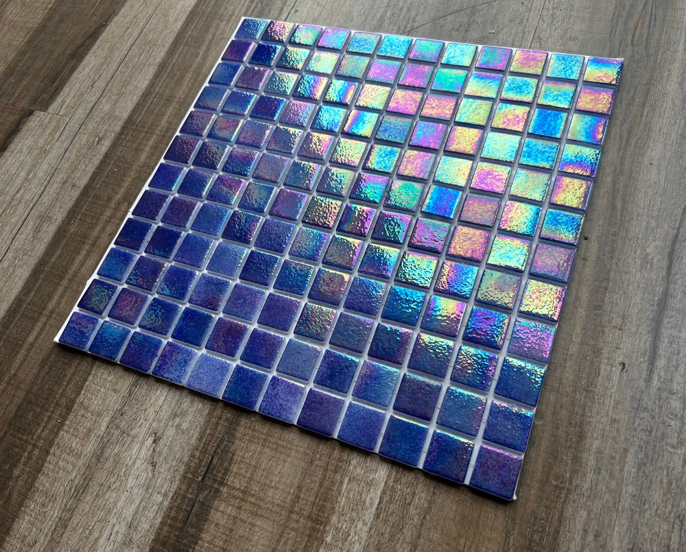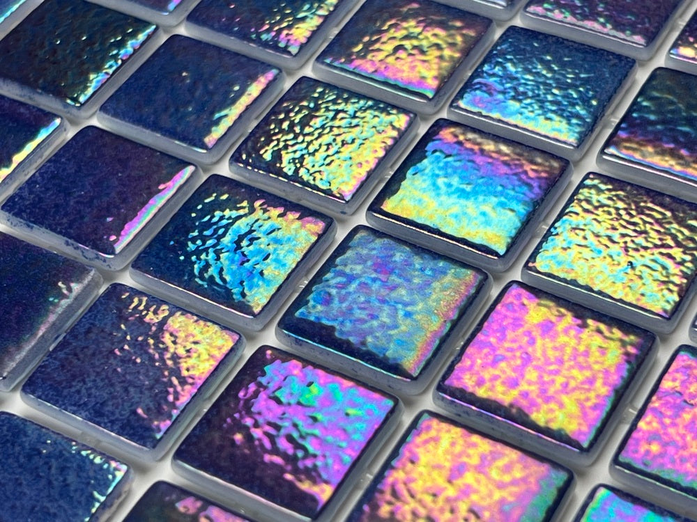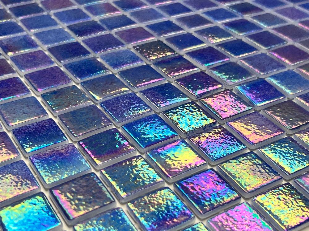 An iridescent purple glass pool tile is a type of tile that is made from glass and has a shimmering, iridescent finish. The iridescence is created by the way that light is refracted through the glass. The tiles come in a variety of sizes and shapes, and can be used to create a variety of looks in a swimming pool.
