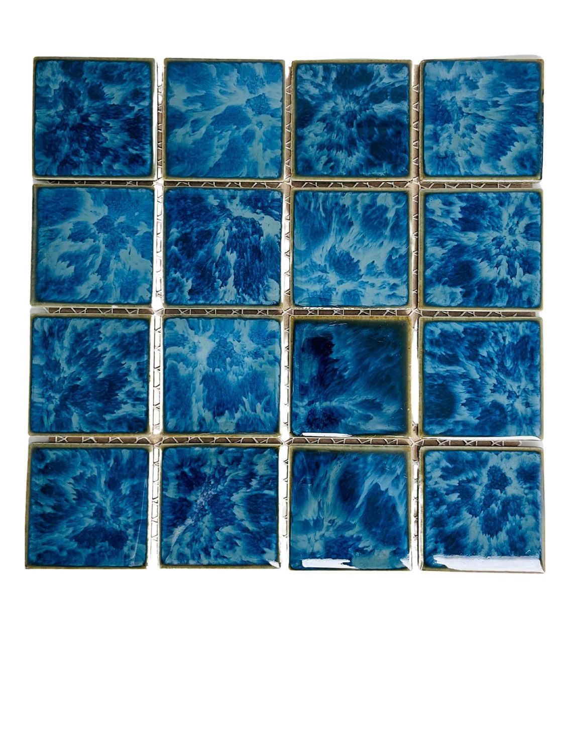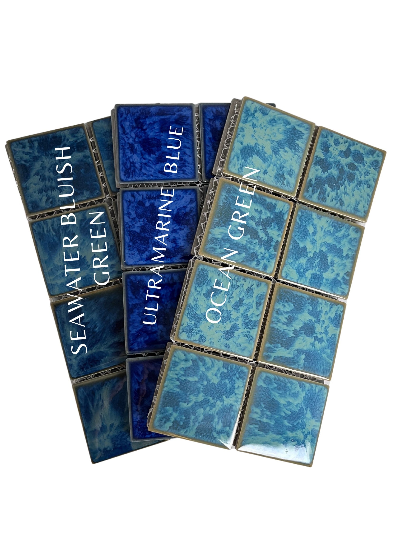 Tenedos TGLFD-3x3-PL Seawater Bluish Green Square 3x3 Porcelain Pool Mosaic Floor and Wall Tile for Backsplash, Kitchen, Bathroom, Swimming Pool
