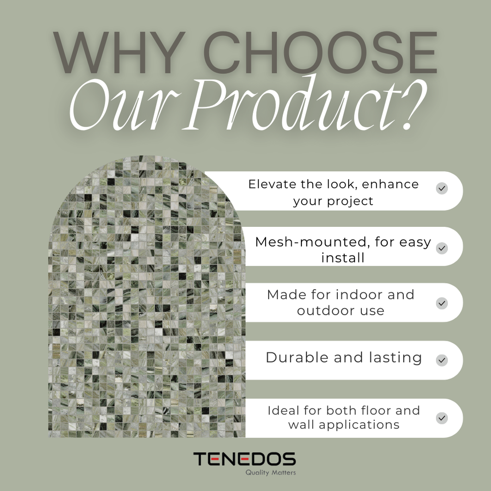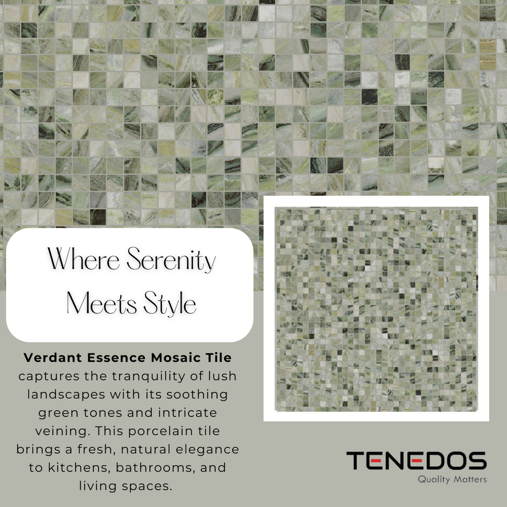 Enhance your living spaces with the stunning Tenedos HTC174 Verdant Essence Porcelain Mosaic Tile. This 12 x 12 tile in a luxurious green marble look delivers the timeless elegance of natural stone with the durability and low maintenance of porcelain. Featuring a matte finish and fade-resistant inkjet design, it’s perfect for high-traffic areas while maintaining its sophisticated charm. From Italian craftsmanship, this tile effortlessly blends style and practicality, ensuring lasting beauty for your home or commercial space.