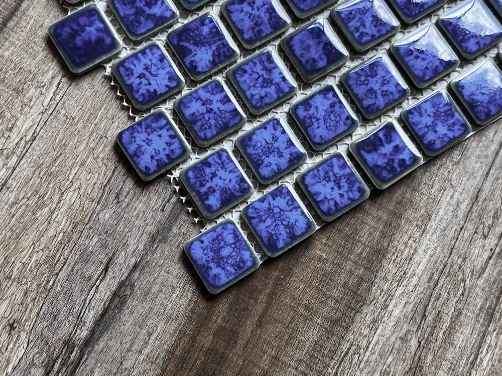 Ultramarine Blue with Gray Shaded Brick Pattern 1 Inch Porcelain Pool Mosaic Floor and Wall Tile for Backsplash, Kitchen, Bathroom, Swimming Pool