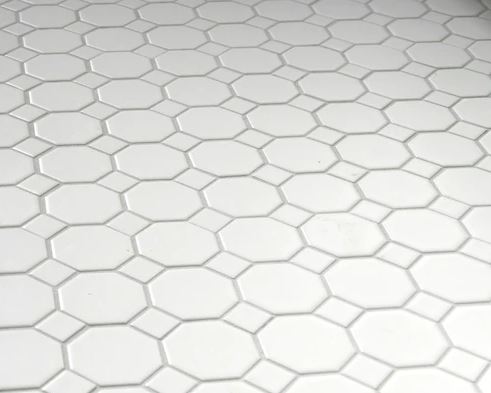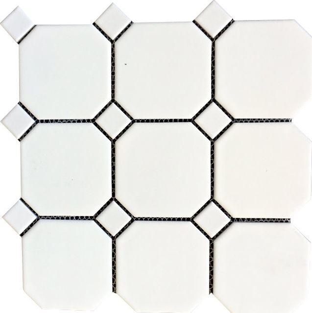 • 4" Octagon Matte White Mosaic with Matte White Dots Mosaic Tile