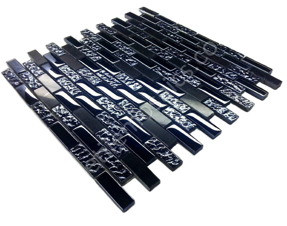 Add a crisp, clean look to your space with Nero Marquina Polished Black Glass Mosaic Tile - Brick Pattern.