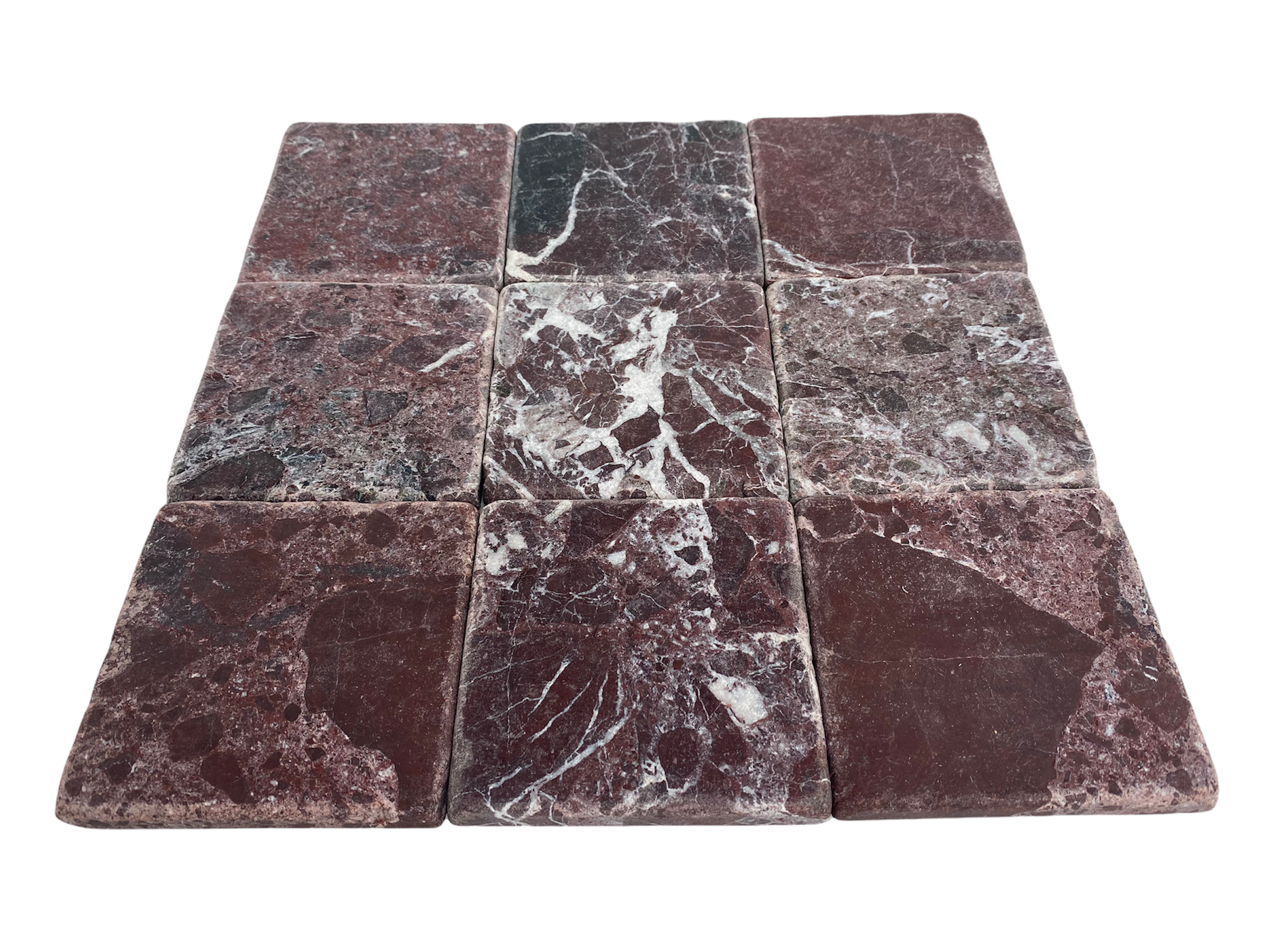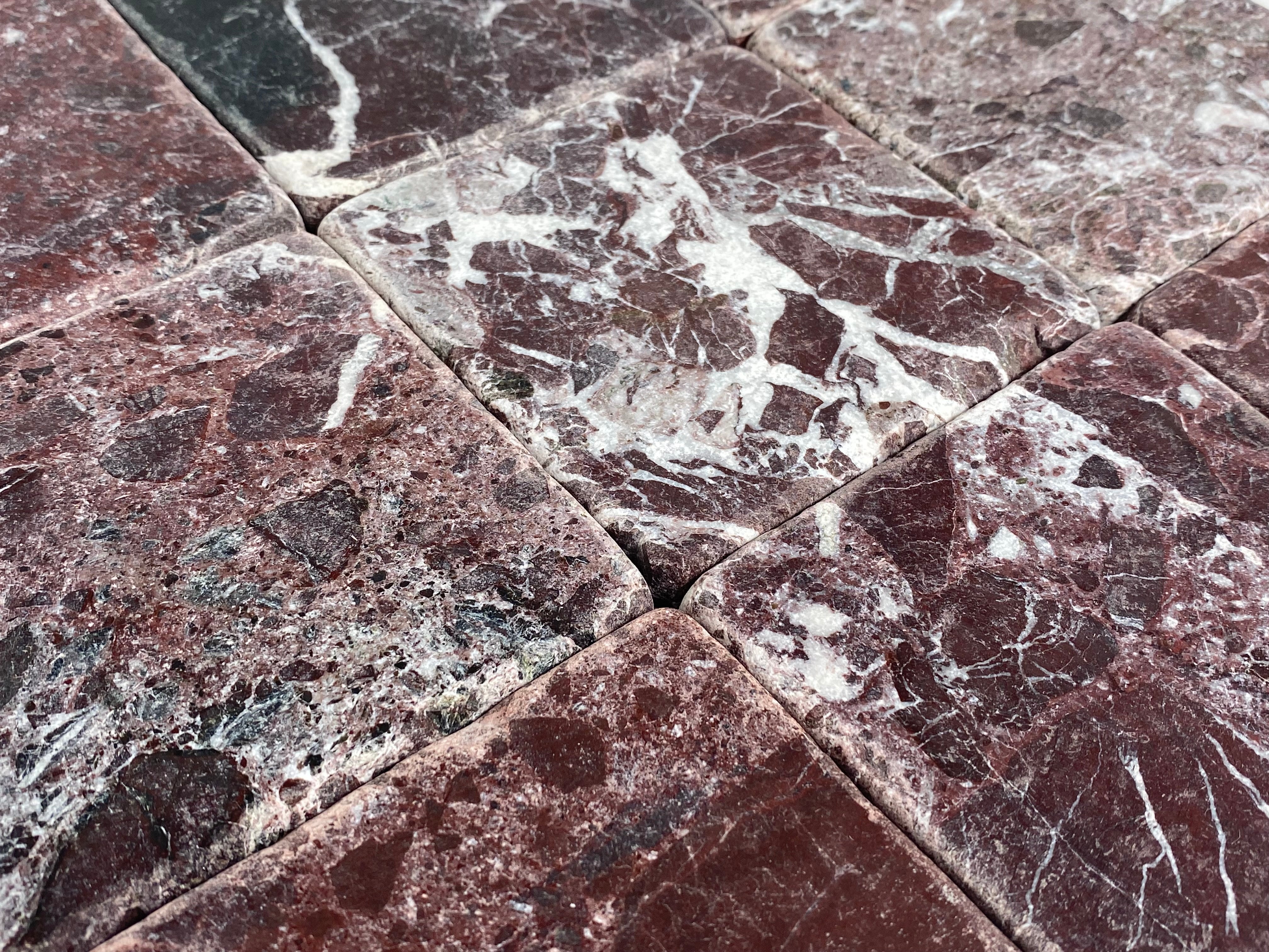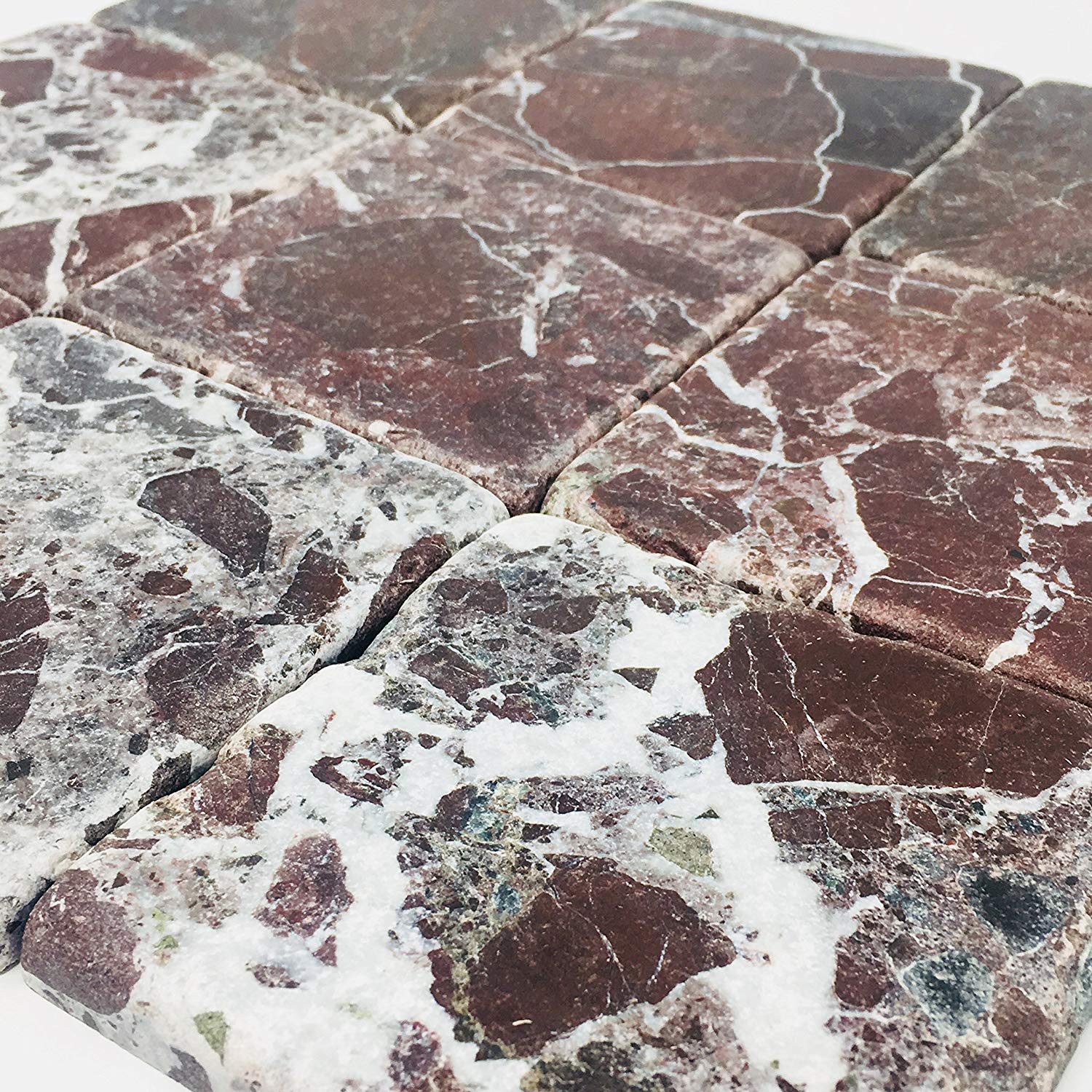Rosso Levanto Burgundy Cherry Wine Color Rosa Marquina Marble 4x4 Inch Antique Tumbled Finish Floor Wall Tile for Fireplace Surround, Kitchen Backsplashes, Exterior Interior Tile, Coaster Handcraft