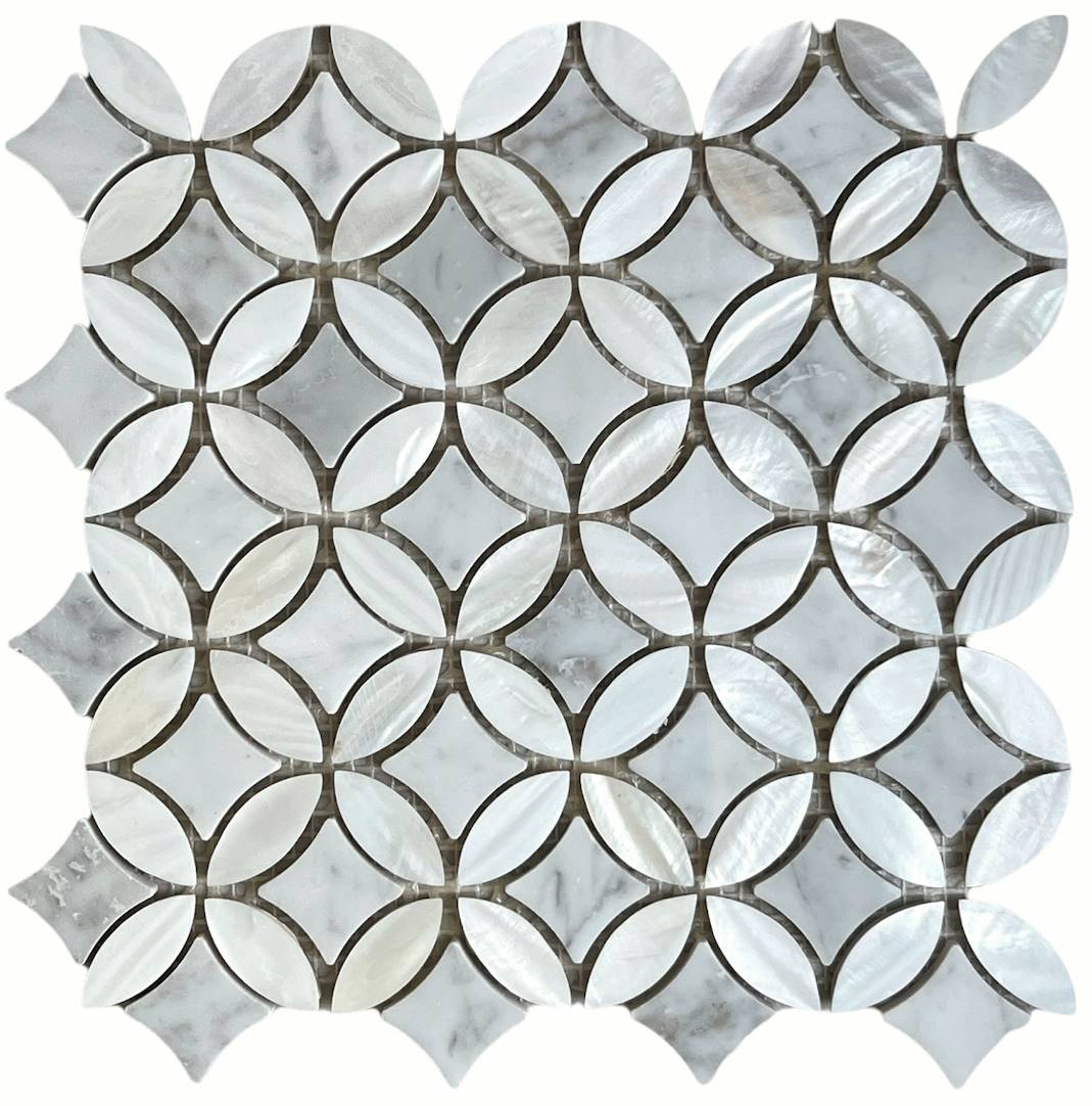 • White Carrara with Mother of Pearl Flower Tiles