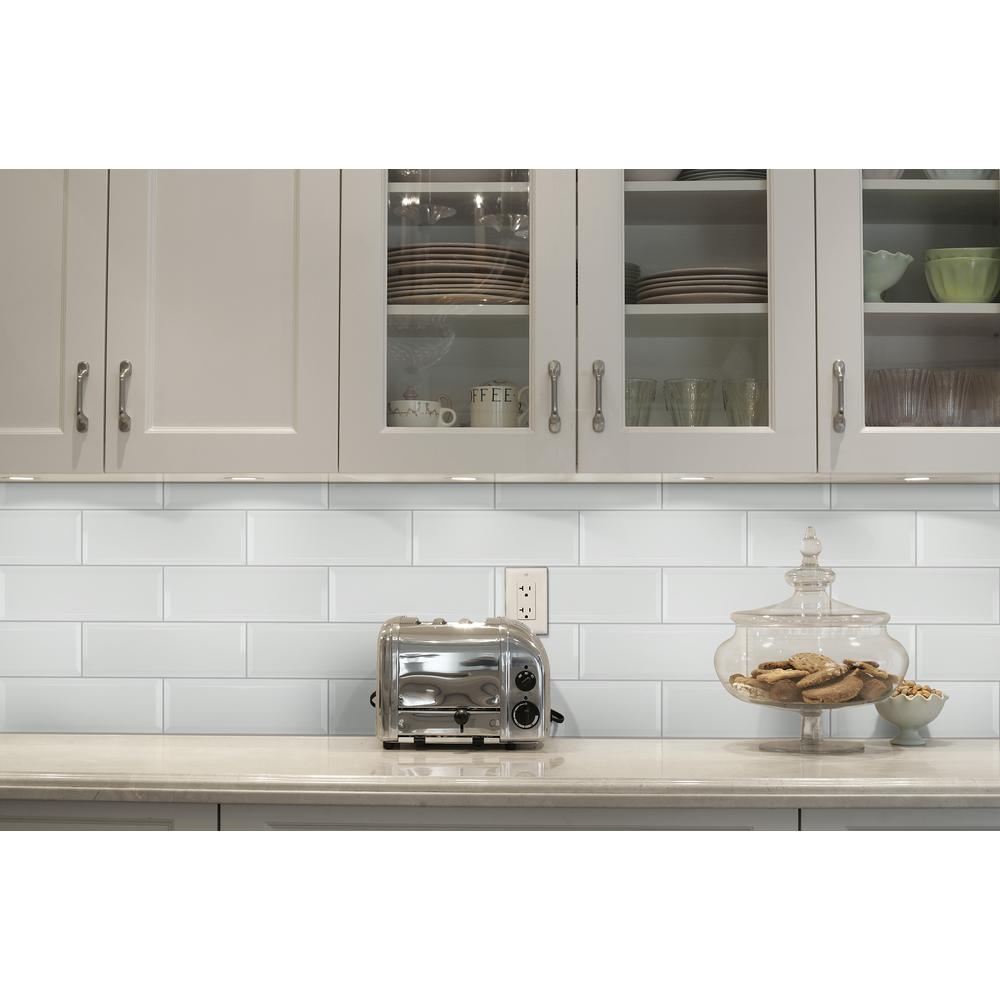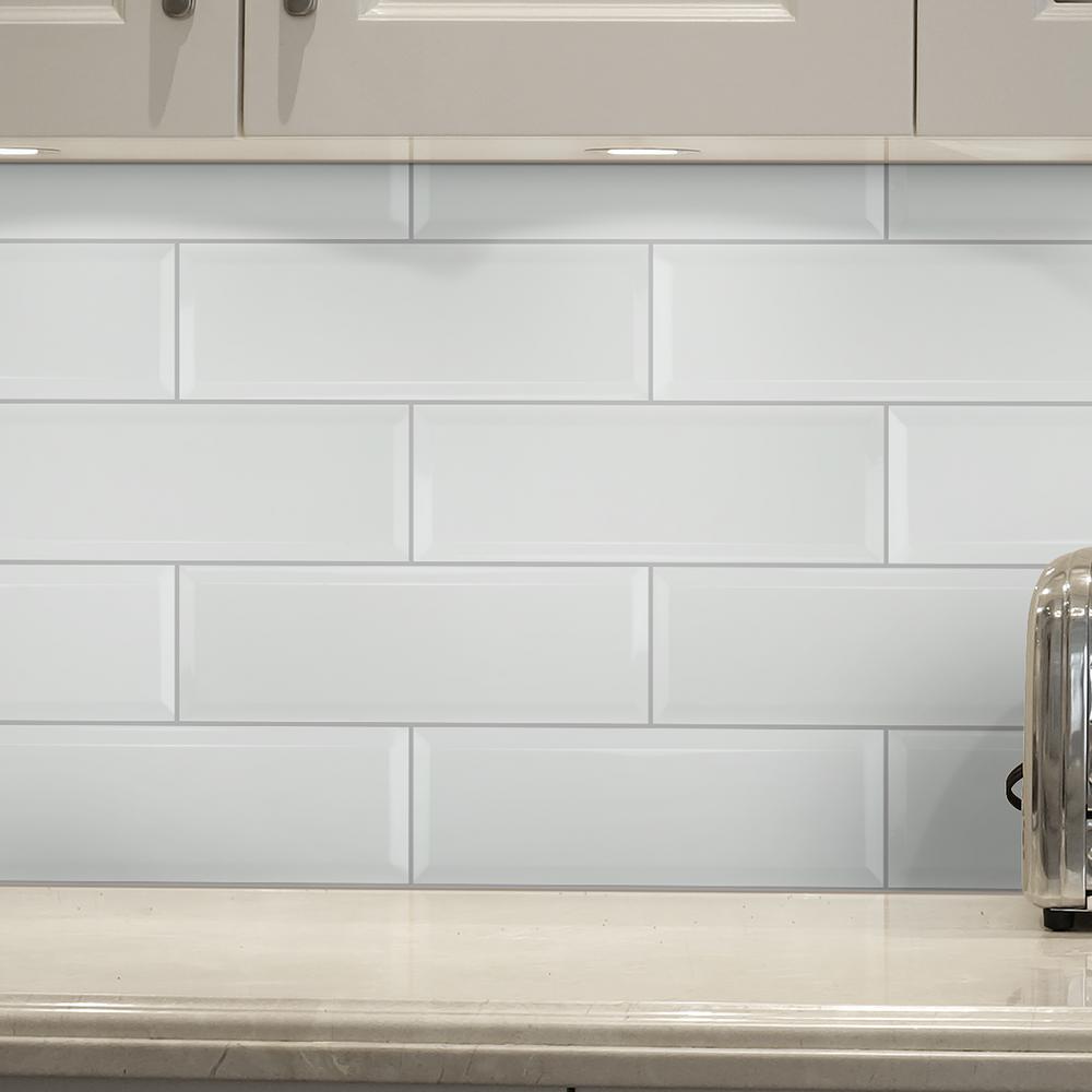 White Beveled Ceramic Subway Tile 4 inch x 12 inch ( Product is sold by box) Color:...