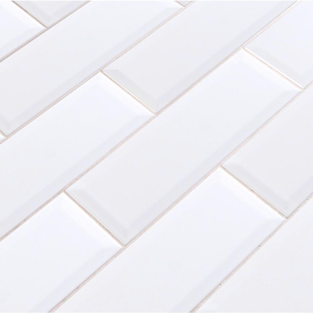 • White Beveled Ceramic Subway Tile 4 inch x 12 inch ( Product is sold by box)