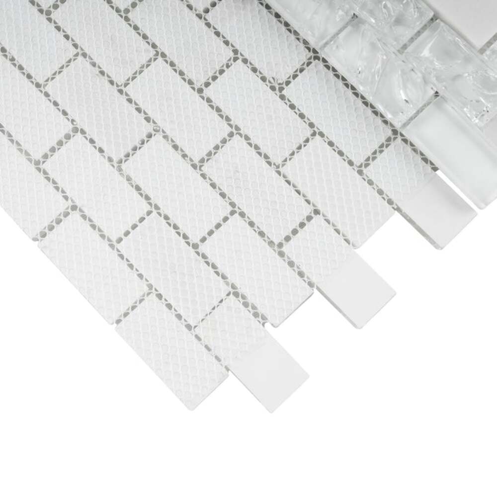 White Crackle Glass and Bianco Marble Mosaic Tiles